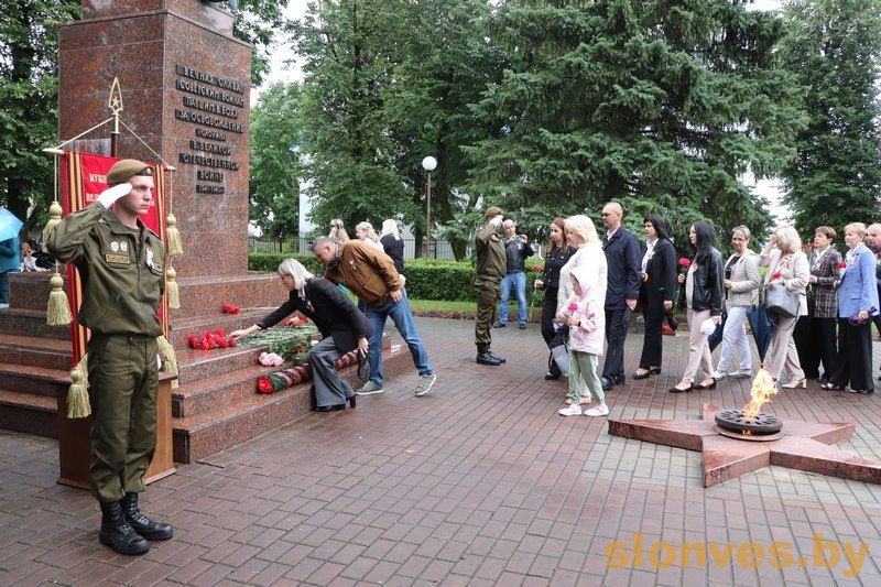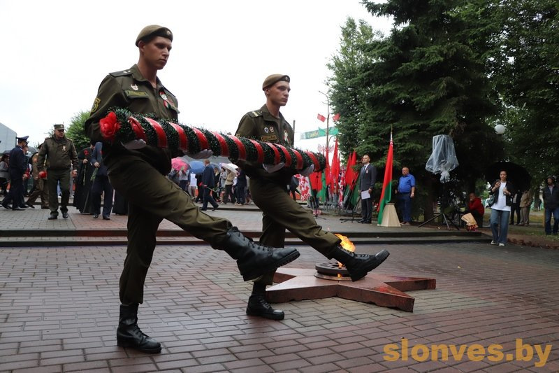 На мероприятии выступил заместитель командира 11-й отдельной гвардейской механизированной бригады по идеологической работе гвардии подполковник Семен Николаевич Мальцев. Он отметил, что воины гарнизона всегда стояли и будут стоять на защите Родины. Слонимчане хранят память о воинах-освободителях, защитниках Отечества, передавая ее из поколения в поколение. В наших сердцах никогда не погаснет свет Победы. Прошла торжественная церемония возложения венков и живых цветов к мемориалу. Собравшиеся минутой молчания почтили память тех, кто отдал свои жизни за свободу Родины.