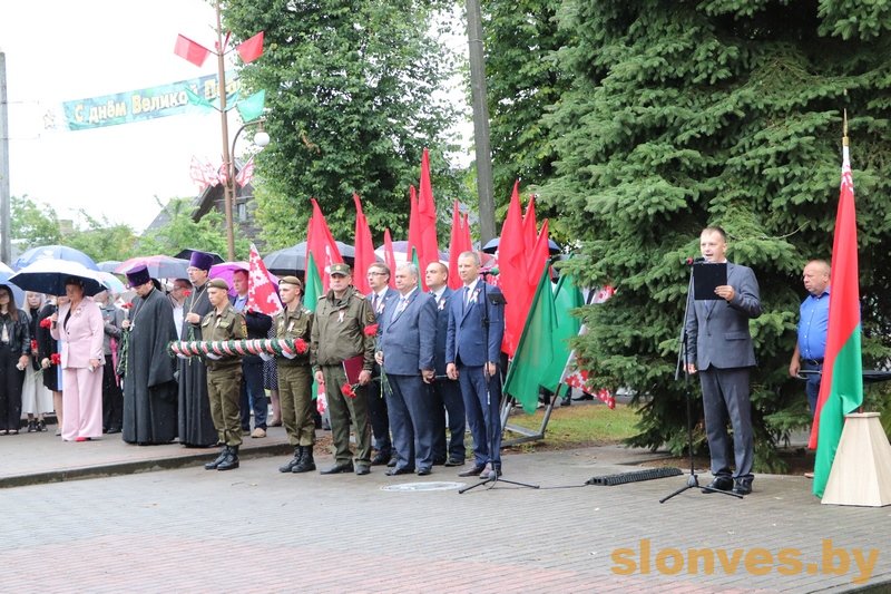 Выступая перед собравшимися, председатель Слонимского райисполкома Геннадий Болеславович Хомич отметил, что в этот день, во время Великой Отечественной войны, с территории нашего района враг был изгнан окончательно. Подвиг советских солдат и офицеров здесь, на Слонимщине, не имеет срока давности ни в истории, ни в сердцах жителей. Мы с благодарностью вспоминаем тех, кто в годы Великой Отечественной войны насмерть сражался за каждую горсть родной земли и приближал свободу. Спасибо каждому, кто в последствии восстанавливал израненную слонимскую землю из руин и пепла, налаживая мирную жизнь. Сохранять и умножать достижения, поддерживать мир и укреплять безопасность – сегодня это святая обязанность каждого из нас.