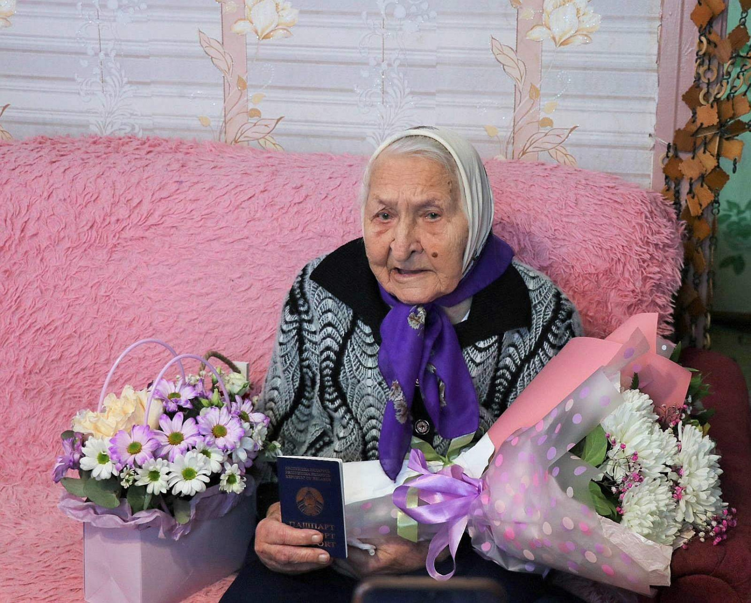 В свой день рождения Янина Абрамович принимала поздравления не только от близких, родных и знакомых, но и от руководства района, лидеров общественных организаций. Поздравить женщину с юбилеем и выразить благодарность за неоценимый труд на благо родного края приехали заместитель председателя райисполкома, председатель районной организации ОО «Белая Русь» Анна Язель, председатель Ошмянского райкома профсоюза работников АПК Раиса Турлай, начальник управления по труду, занятости и социальной защите райисполкома Ирина Губарева, директор ТЦСОН Ошмянского района Наталья Тихонович. Начальник отделения по гражданству и миграции Ошмянского РОВД Анастасия Хилькевич вручила Янине Стефановне в ее сотый день рождения новый главный документ гражданина Республики Беларусь – паспорт.