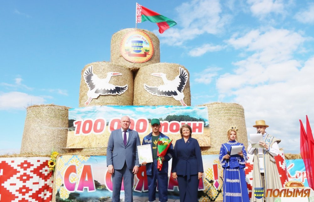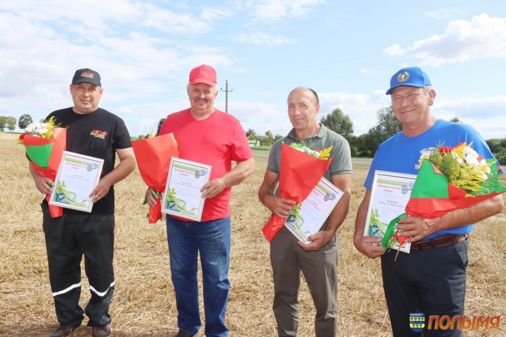 Руководство района, руководители сельхозпредприятий и аграрии собрались на полях СПК «Маяк-Заполье» — районного лидера по урожайности, чтобы поздравить друг друга с невероятным результатом колоссального труда, профессионализма и сплоченности. Помимо 100 тысяч тонн хлеба в закромах, район четвертую неделю лидирует на Гродненщине по урожайности.