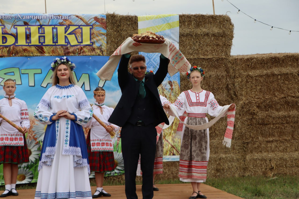 В КСУП «Ханчицы-Неман» прошло торжественное мероприятие, посвященное завершению уборочной страды. Начался праздник с вручения руководителю хозяйства каравая из муки нынешнего урожая. Такие же преподносили комбайнерам, водителям и почетным гостям.