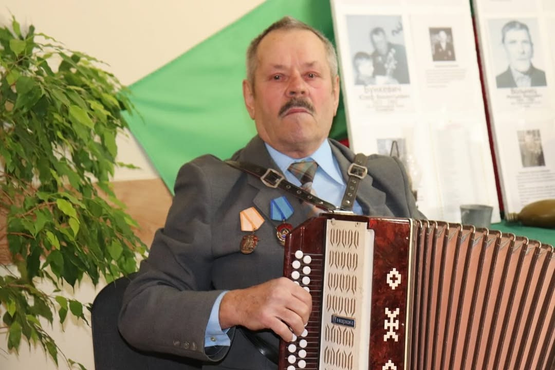 потым юбіляр узяў у рукі гармонік, зайграў і заспяваў “Кацюшу”. Падпяваць