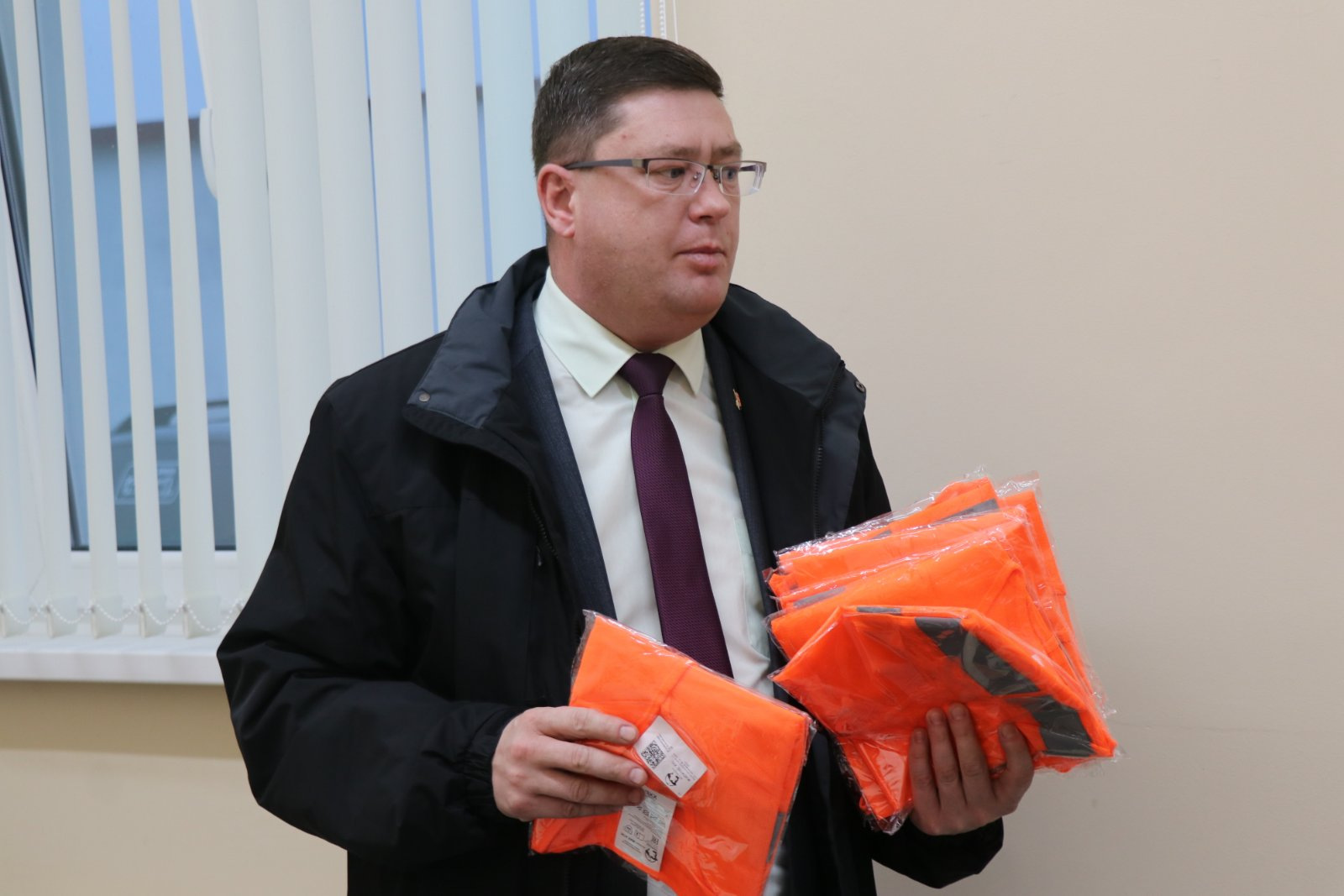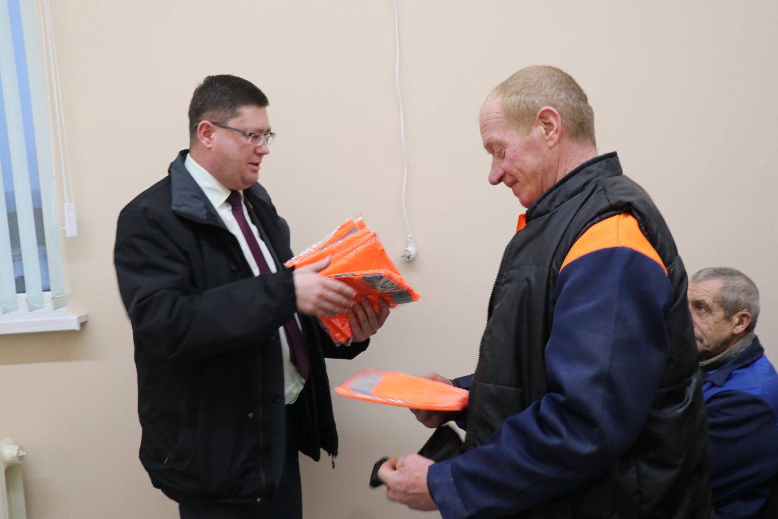 В рамках проводимой Ошмянской районной профсоюзной организацией Белорусского профсоюза работников агропромышленного комплекса акции "Будь в безопасности" на базе КСУП "Гольшаны" проведена встреча с трудовым коллективом МТФ "Воловики". Были затронуты вопросы охраны труда, один из которых: Как обозначить себя в тёмное время суток при проведении работ вблизи автодорог или передвижение пешком (на велотранспорте) вдоль неосвещенных дорог. В связи с данной акцией работникам выданы светоотражающие жилеты.