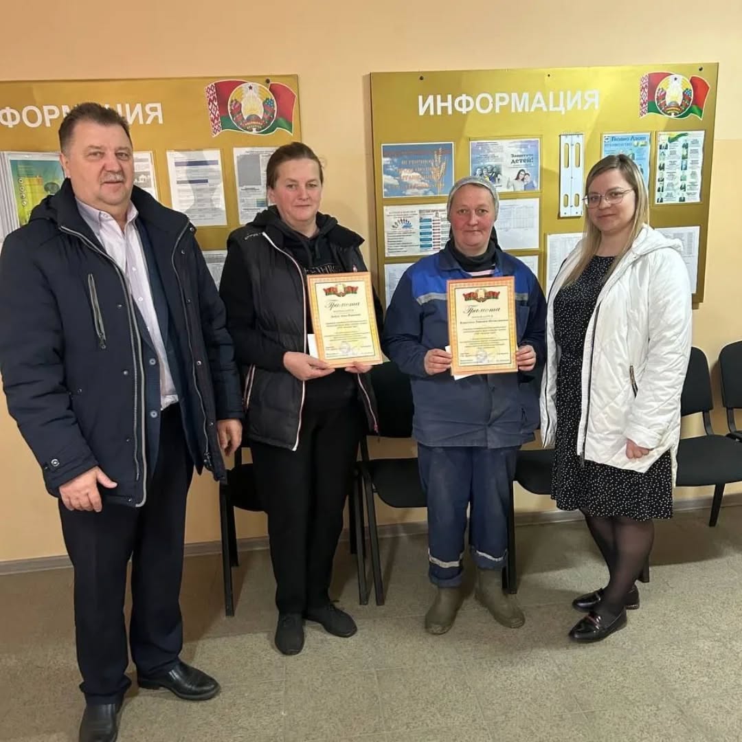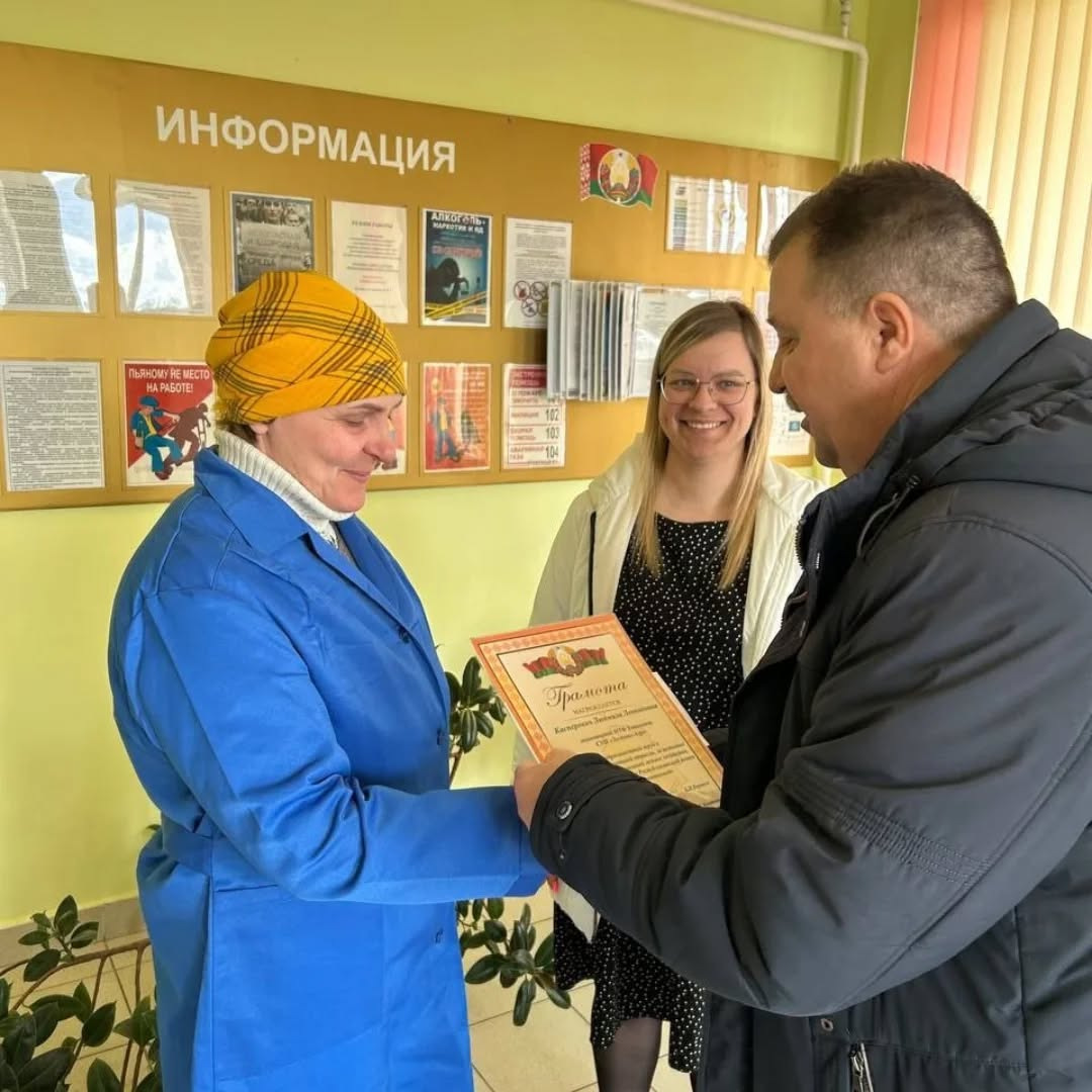В СУП "Лаздуны-Агро" директором Брониславом Вершелем и председателем профсоюзного комитета Екатериной Кнутович вручены премии и грамоты лучшим работникам животноводческой отрасли.