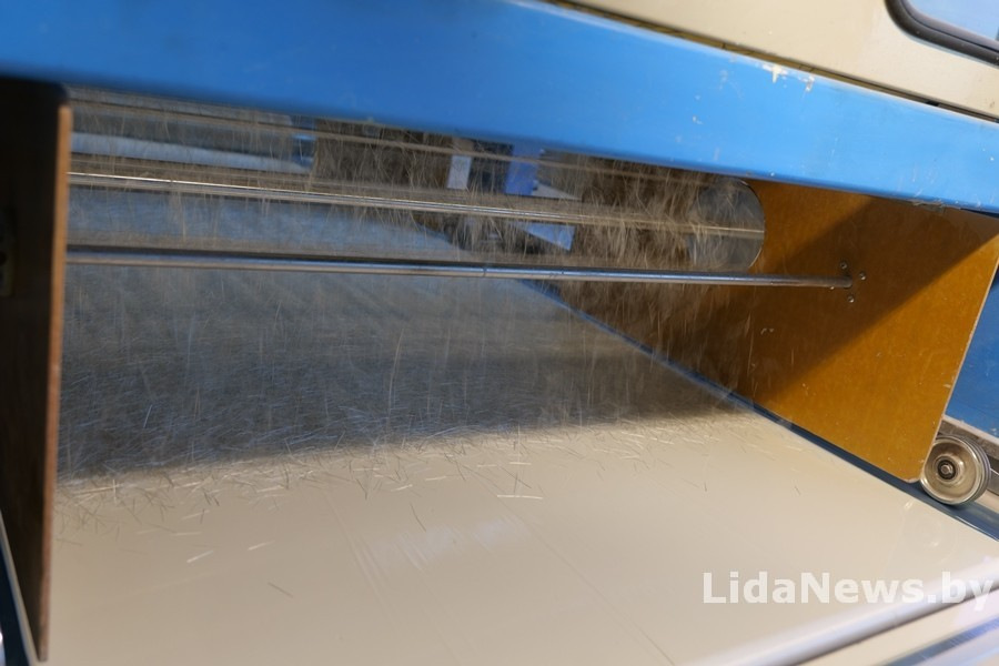 – На самом деле, это стеклонити, которые из катушек направляются вверх к блоку рубки, где измельчаются на мелкие волокна – ровинг. С помощью специальных разбрасывателей эта «начинка» равномерно распределяется по поверхности смоляной пасты. Сверху подается еще один слой пасты, нанесенной на пленку. Затем полученный «сэндвич» прикатывается и прижимается металлическими валами, – поясняет Леонид Иванович.