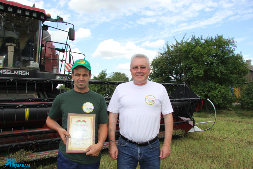 Казимир Сливко достиг тысячного результата в конце недели. Его в поле тепло поздравили и вручили награды председатель районной профсоюзной организации работников АПК Виктор Метлюк и директор сельхозпредприятия Виктор Кулисевич. К поздравлениям присоединились его заместитель по идеологической работе Наталья Богданец и председатель первичной профсоюзной организации Людмила Вилюнова.