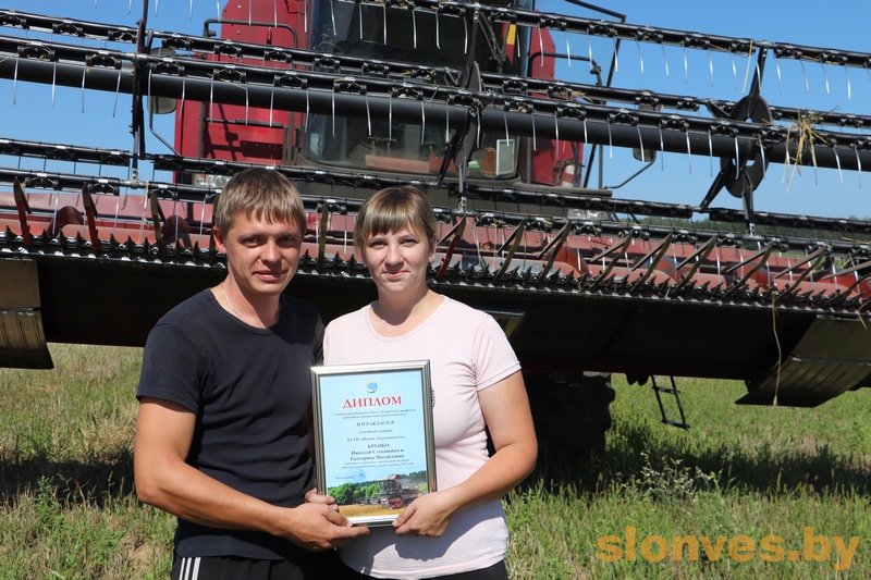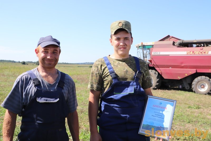 О семейном экипаже Крупко мы не раз рассказывали читателям. Николай Степанович и Екатерина Николаевна оказались в числе победителей районного соревнования на уборке зерновых. С улыбкой супруги покинули кабину GS-10, чтобы принять слова поздравления и заслуженную награду. На этой жатве Крупко работается хорошо и спокойно. Конечно, не легко, но они знают для кого стараются. На заработанные деньги Николай и Екатерина планируют собрать своих двоих детей в школу и сделать дома ремонт. Особенно приятно было видеть в числе лидеров жатвы молодого комбайнера КСУП «Драпово» Юрия Романовича Заричука. Молодому человеку 22 года, и в этом году в качестве комбайнера он проводит уже свою третью жатву. Второй в экипаже – опытный Игорь Петрович Врублевский. Работать в поле в самую горячую пору зерноуборки было личным желанием Юрия Романовича. С юности он постоянно был в одном экипаже с отцом-комбайнером, изучил все тонкости профессии и получил необходимый опыт. Профсоюзные лидеры района высказали самые искренние слова благодарности хлеборобам, с глубоким уважением пожали трудовые мозолистые руки и пожелали дальнейших успехов.