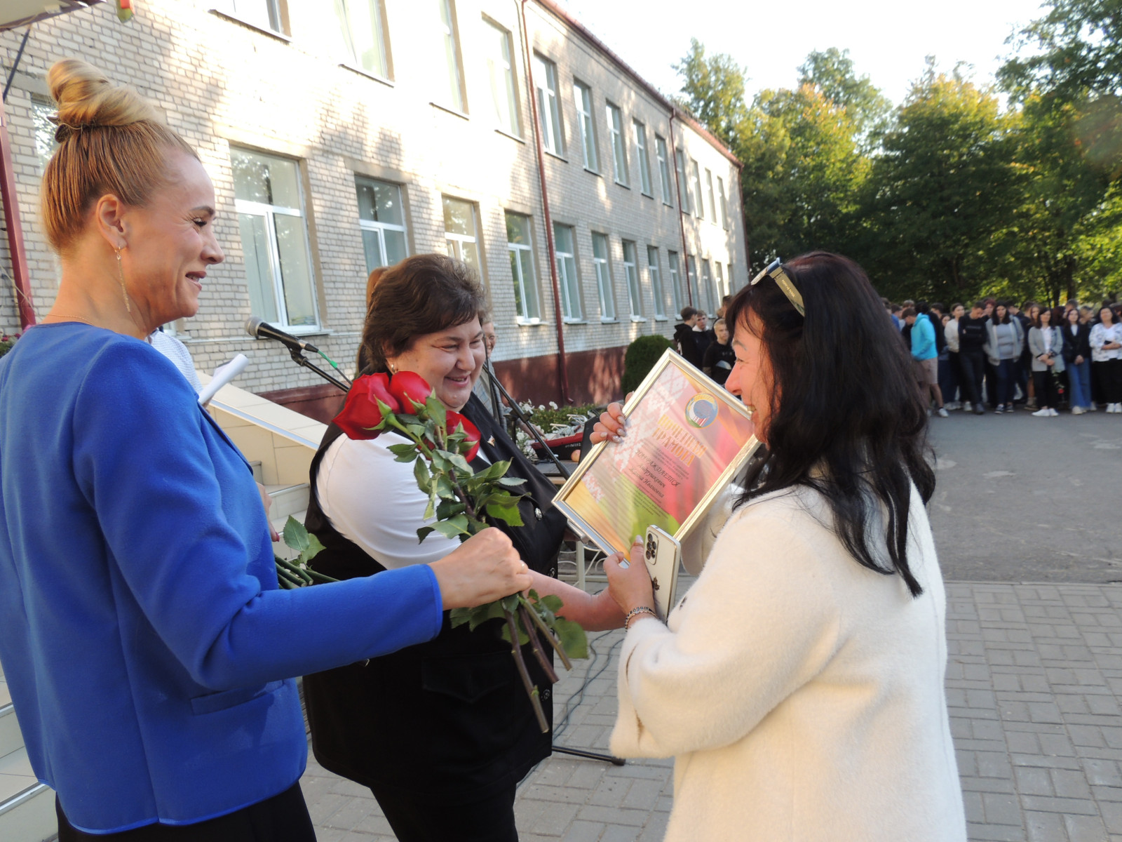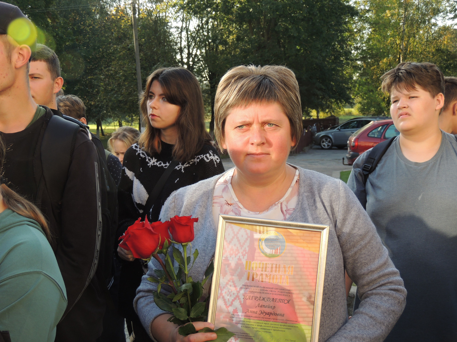 К поздравлениям присоединилась председатель Ошмянской районной организации Белорусского профессионального союза работников АПК Турлай Раиса Николаевна и главный бухгалтер Людкевич Оксана Анатольевна, которые вручили грамоты за добросовестную плодотворную работу, достигнутые успехи в организации образовательного процесса, высокий профессионализм преподавателям колледжа Андрушкевич Ж.И. и Жуковской В.Г., мастеру производственного обучения Лапейко А.Э..