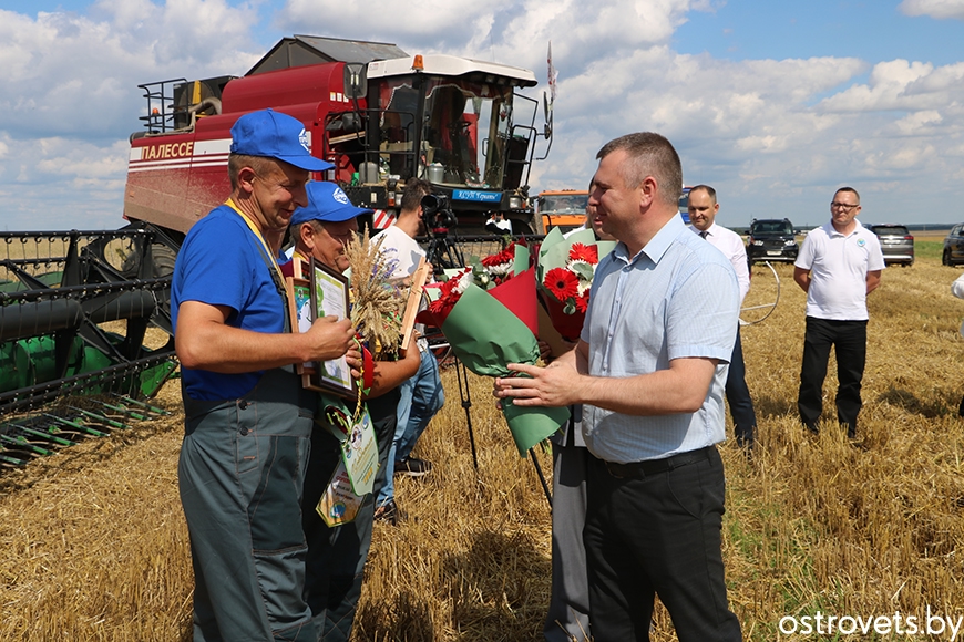 – Заўважыла, што жніво вельмі змяняе хлебаробаў: яны з імпэтам адсочваюць зводку лідараў, абедаюць з памочнікамі па чарзе, каб больш намалаціць… Дух саперніцтва вельмі адчуваецца. Ці ёсць нешта падобнае паміж дырэктарамі? Прызнайцеся, прыемна, што ўвесь жніўны п’едэстал занялі вашы работнікі?