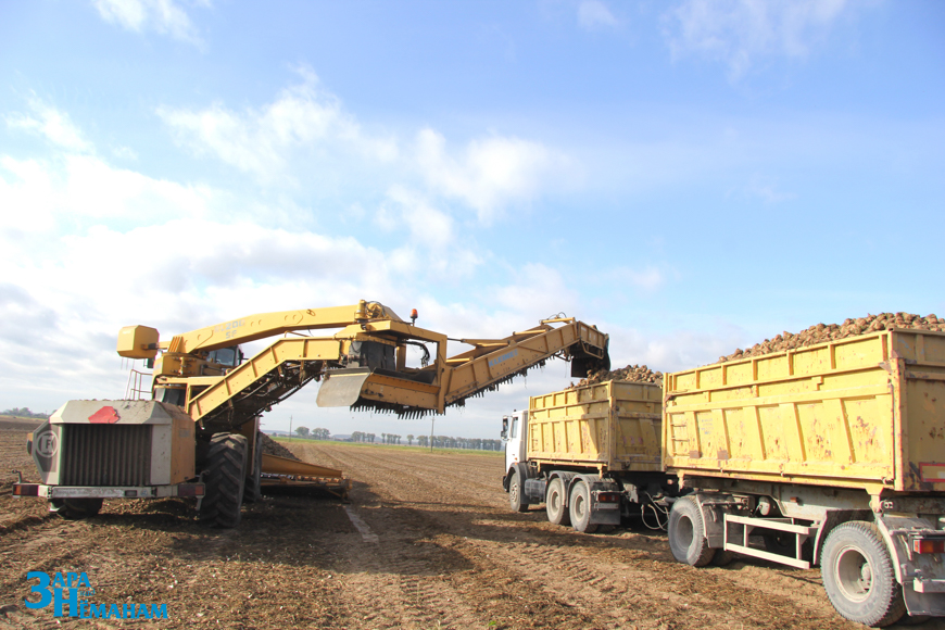 На огромном поле за Большими Озёрками разместились кагаты сахарной свёклы. Здесь же идёт отгрузка. Один за другим подъезжают большегрузные МАЗы, Скании, Мерседесы. Их загружает сахарной свёклой Николай Бич. Вывозкой в основном занят транспорт перерабатывающего предприятия.