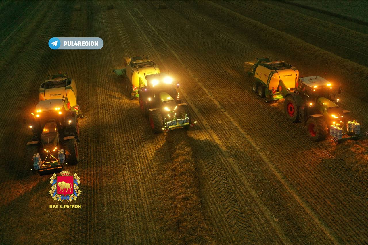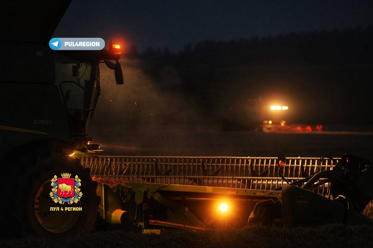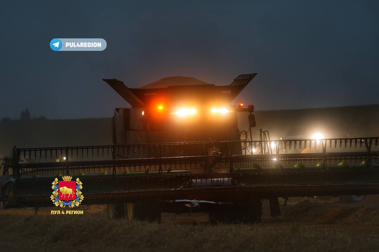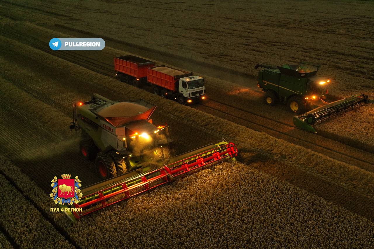 "Пул 4" снял, как ночью идет уборка озимой пшеницы в ПК имени В.И. Кремко