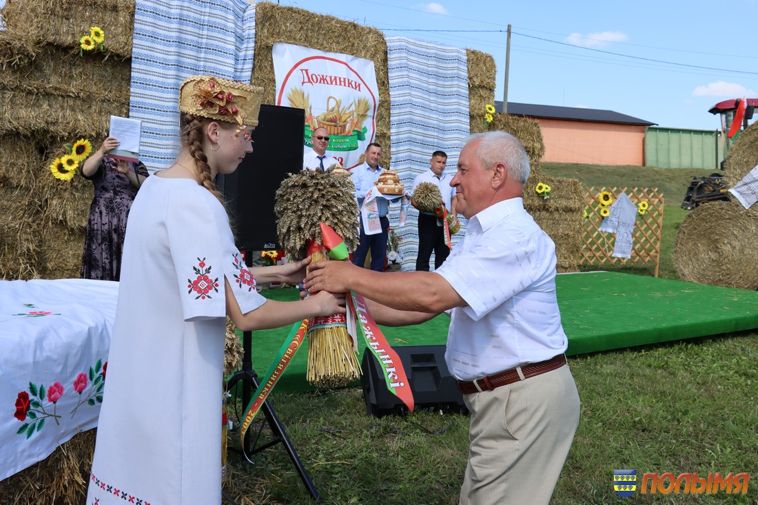 Хлеб издавна считался символом жизни, плодородия и благосостояния простого народа. По традиции на «Дожинках» были представлены караваи, испеченные из нового урожая. Для того, чтобы урожай будущего года был не хуже нынешнего, а превзошел его, хлеб был освящен отцом Алексеем. Вручили караваи Александру Метелице, Геннадию Шатуеву и Евгению Бусько. Дожиночные снопы были вручены бригадирам производственных бригад в растениеводстве Юрию Фурсе и Виктору Мятю, а также главному агроному предприятия Дмитрию Волку.