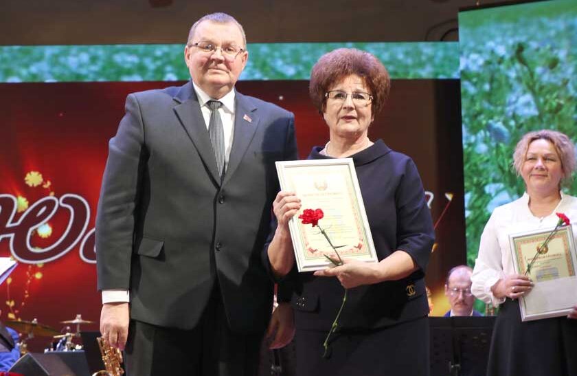 Старшыня раённага Савета дэпутатаў Аляксандр Бараноўскі далучыўся да віншаванняў і ўручыў узнагароды.