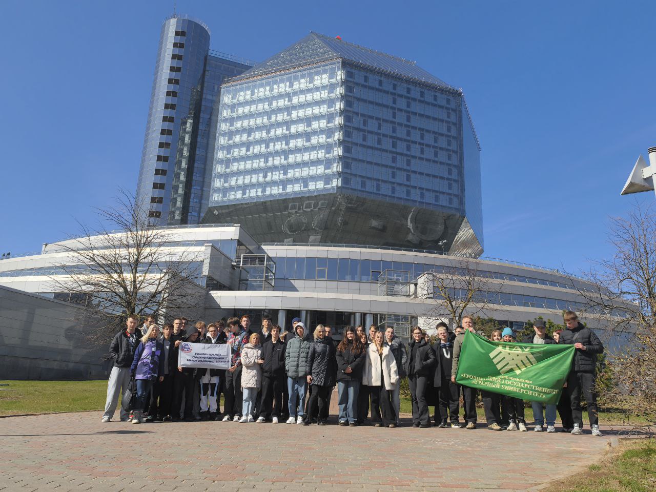 Вторая остановка была возле достопримечательности всей Беларуси «Национальная библиотека Беларуси» (полное название — Государственное учреждение «Национальная библиотека Беларуси). Где студенты посетили саму библиотеку и поднялись на самый ее верх.