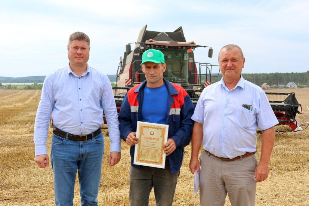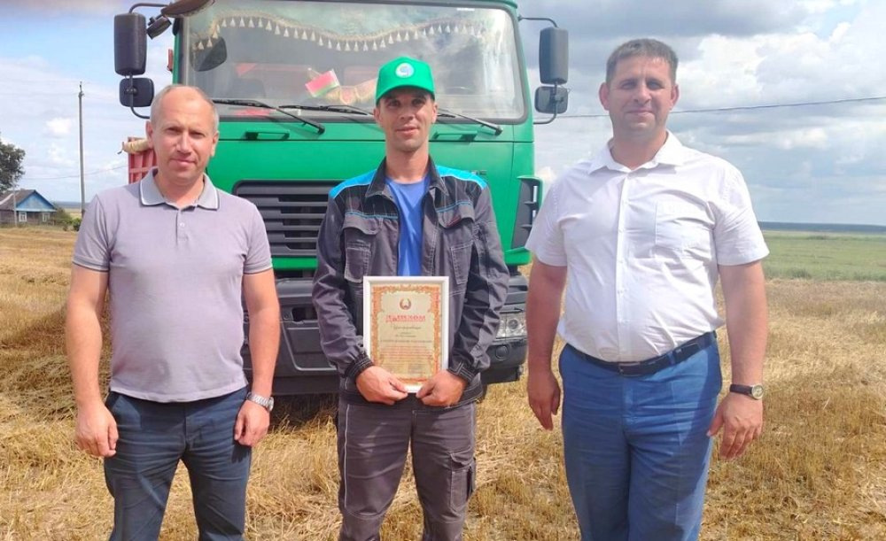 Аграрии Зельвенщины устанавливают новые рекорды. Пришло время награждать хлеборобов взявших двухтысячный рубеж по намолоту зерна. Благодарят за нелегкий труд работников местных хозяйств глава района Денис Ольшевский, его заместитель Сергей Сыско, лидер райкома профсоюза работников АПК Валерий Парфенчик. Дипломов и денежных премий удостоены комбайнер Владимир Кицун и водитель Александр Ламеко из госпредприятия "Голынка", экипаж в составе Александра Степанчука и Томаша Касперца из филиала "Князево". Диана БЕБЕХ