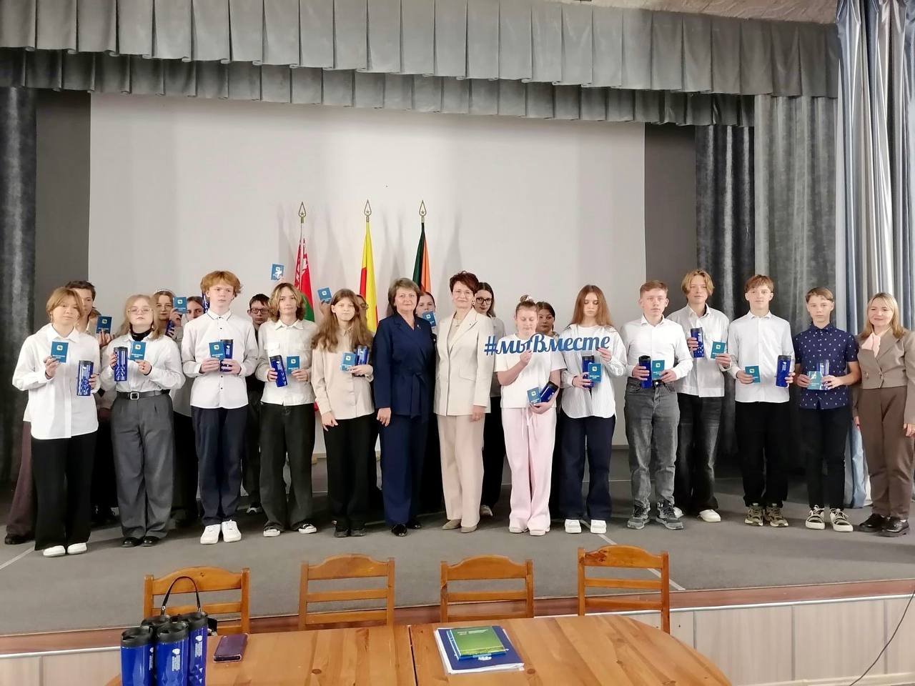 Кульминацией встречи стала торжественная церемония. Учащимся вручили профсоюзные билеты и памятные сувениры.
