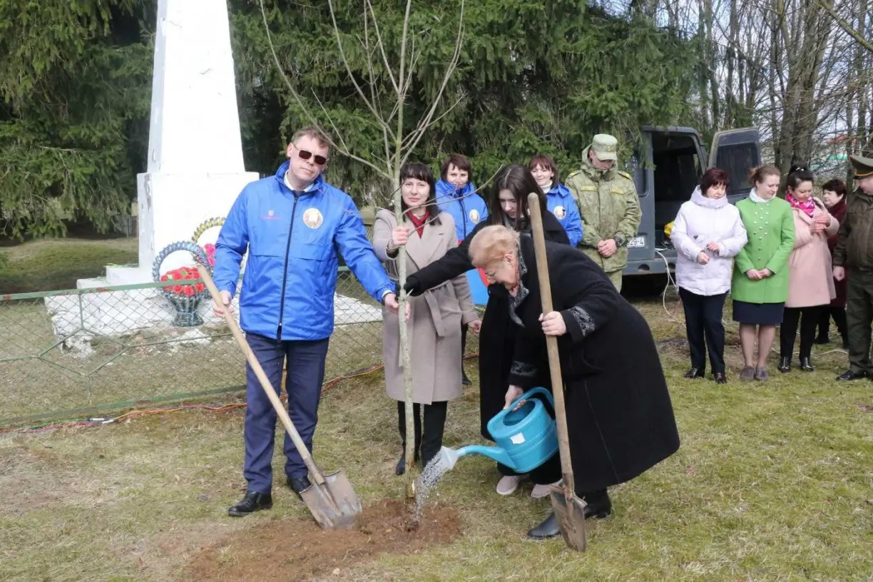 Минутой молчания, возложением цветов к подножью памятника почтили память тех, кто отдал свои жизни за мир и счастье на Земле, за нашу жизнь. Как символ стремления к миру и созиданию рядом с захоронением был высажен клен.