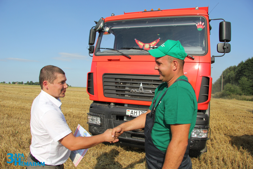Сказать ему добрые слова приехал в сельхозпредприятие заместитель начальника отдела организации производства управления сельского хозяйства и продовольствия райисполкома Александр Харитонов. Он сам молодой инженер, хорошо знает нужды и проблемы участников жатвы. Раньше Александр Анатольевич трудился в КСУП «Имени Адама Мицкевича» главным инженером.