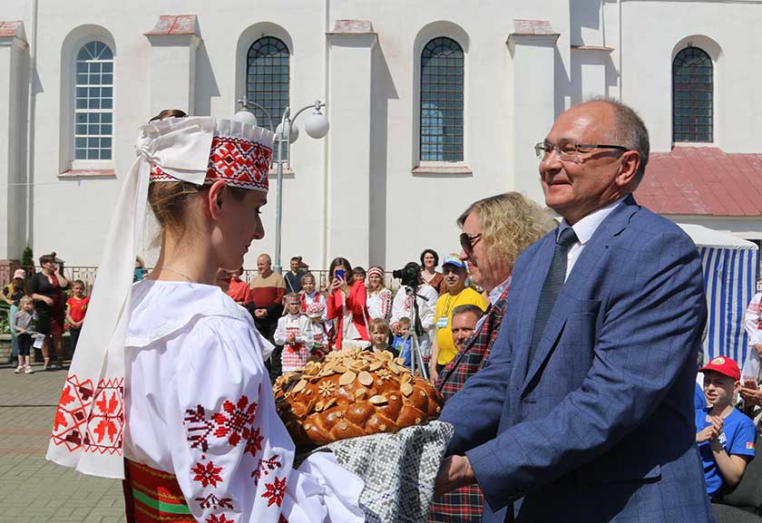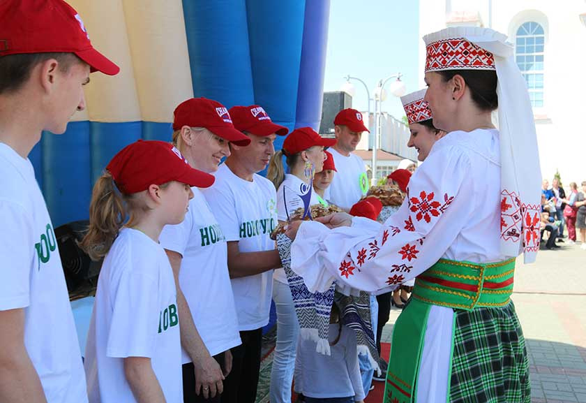 На галоўнай сцэне арганізатары свята павіталі сем’і ўдзельнікаў фестывалю, уручылі ім духмяныя дзятлаўскія караваі і прэзенты на памяць аб сустрэчы.