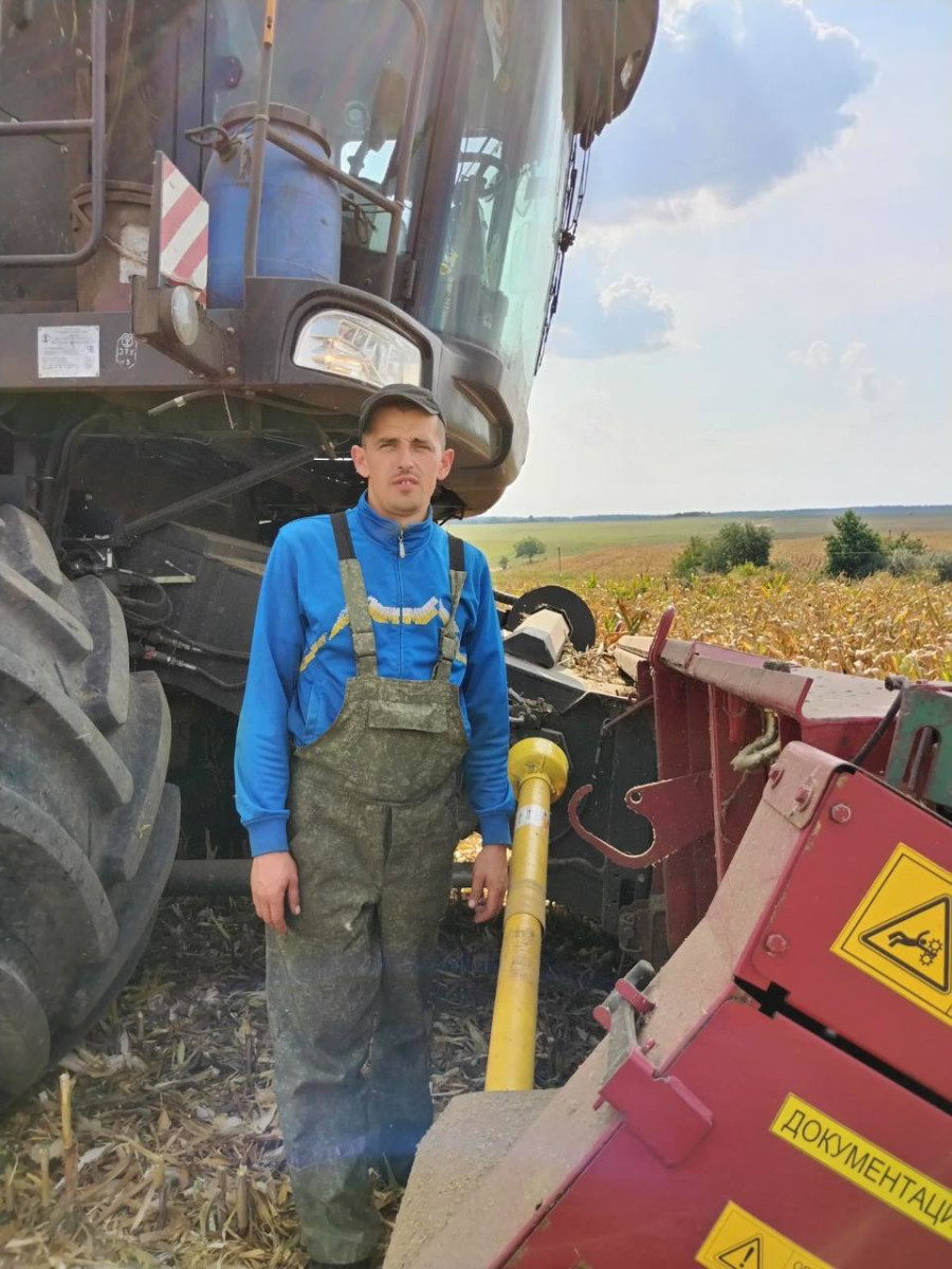 На фото члены профсоюза работников АПК: Николай Гордейко занят на уборке кукурузы на зерно и Жекин Вадим, который задействан на отвозке зерна