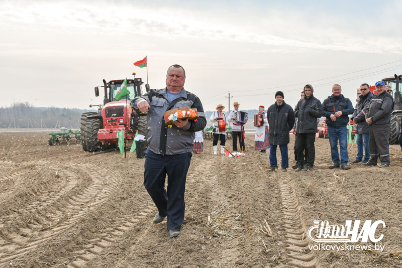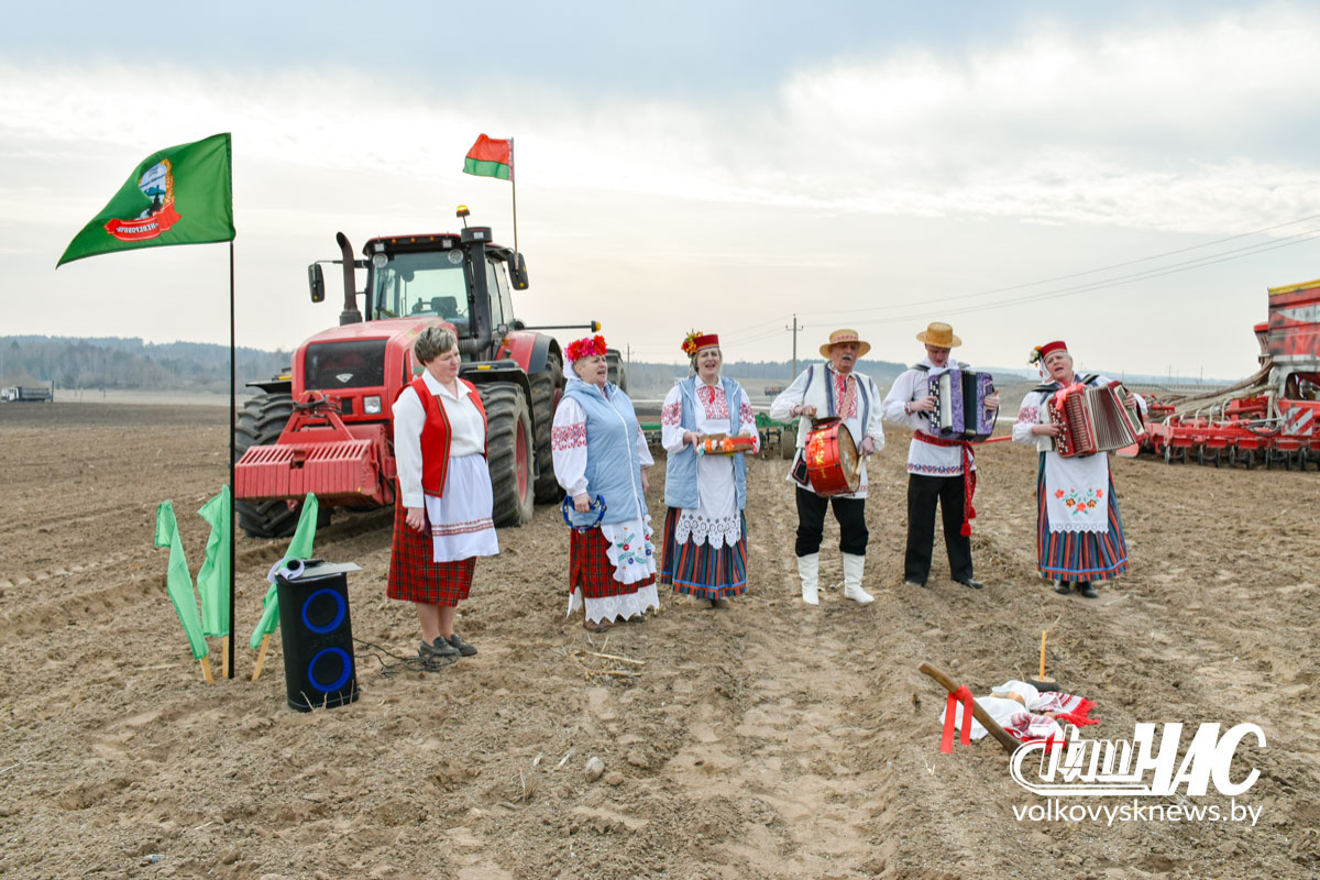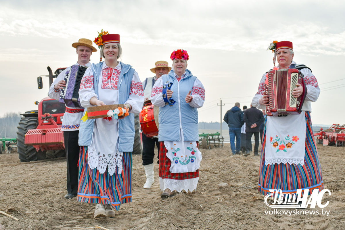 ФОТОФАКТ. Волковысские аграрии первое зерно этой весной бросили в землю, по доброй традиции — начав с народного обряда «Засевки»