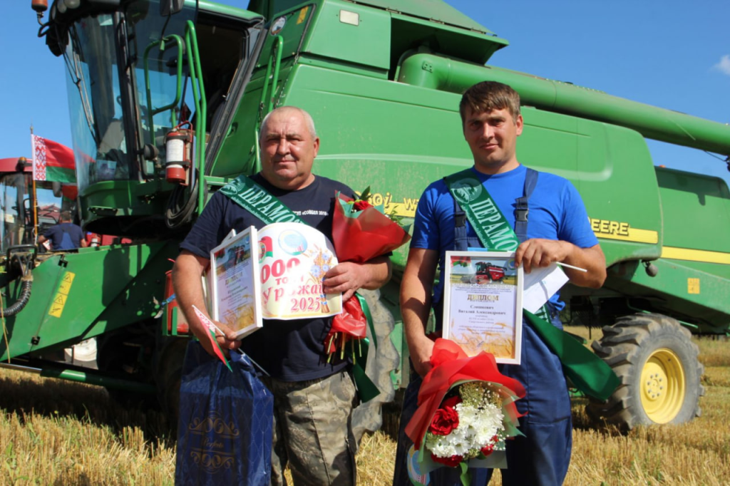 Экипаж комбайнеров Владимира Щуровского и Виталия Слишкевича из КСУП «Совбел-2016» Сморгонского района стал первым тысячником в своем регионе. А уже к этому времени вместе они намолотили 1,5 тысячи тонн зерна.