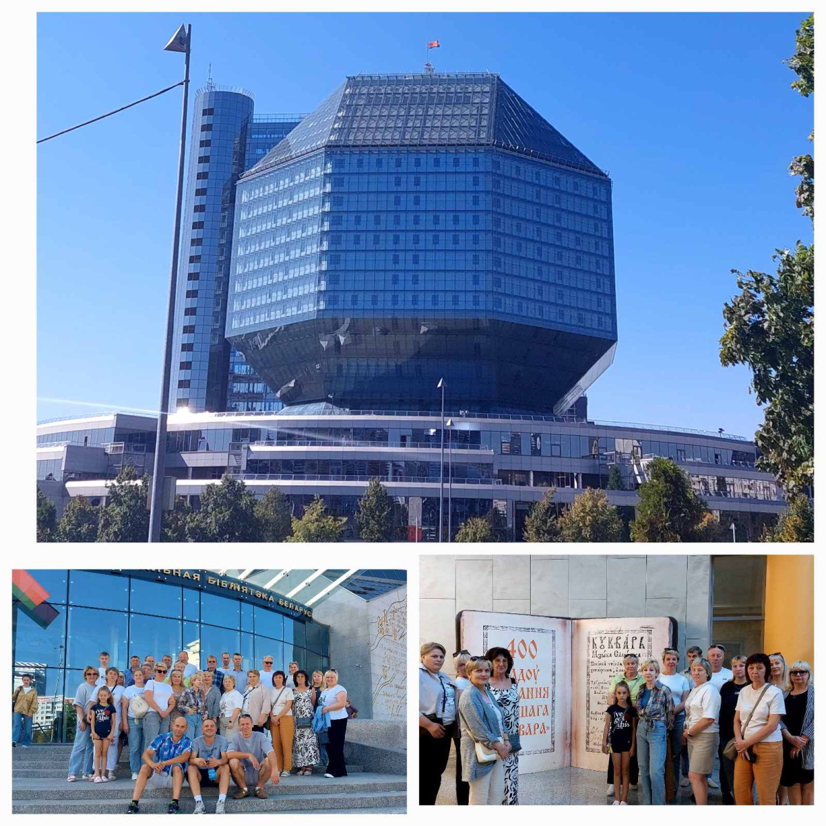 В последние тёплые дни лета члены первичной профсоюзной организации СПТФ ОАО "Агрокомбинат "Скидельский" и их дети совершили экскурсионную поездку в Национальную библиотеку и мемориальный комплекс Хатынь.