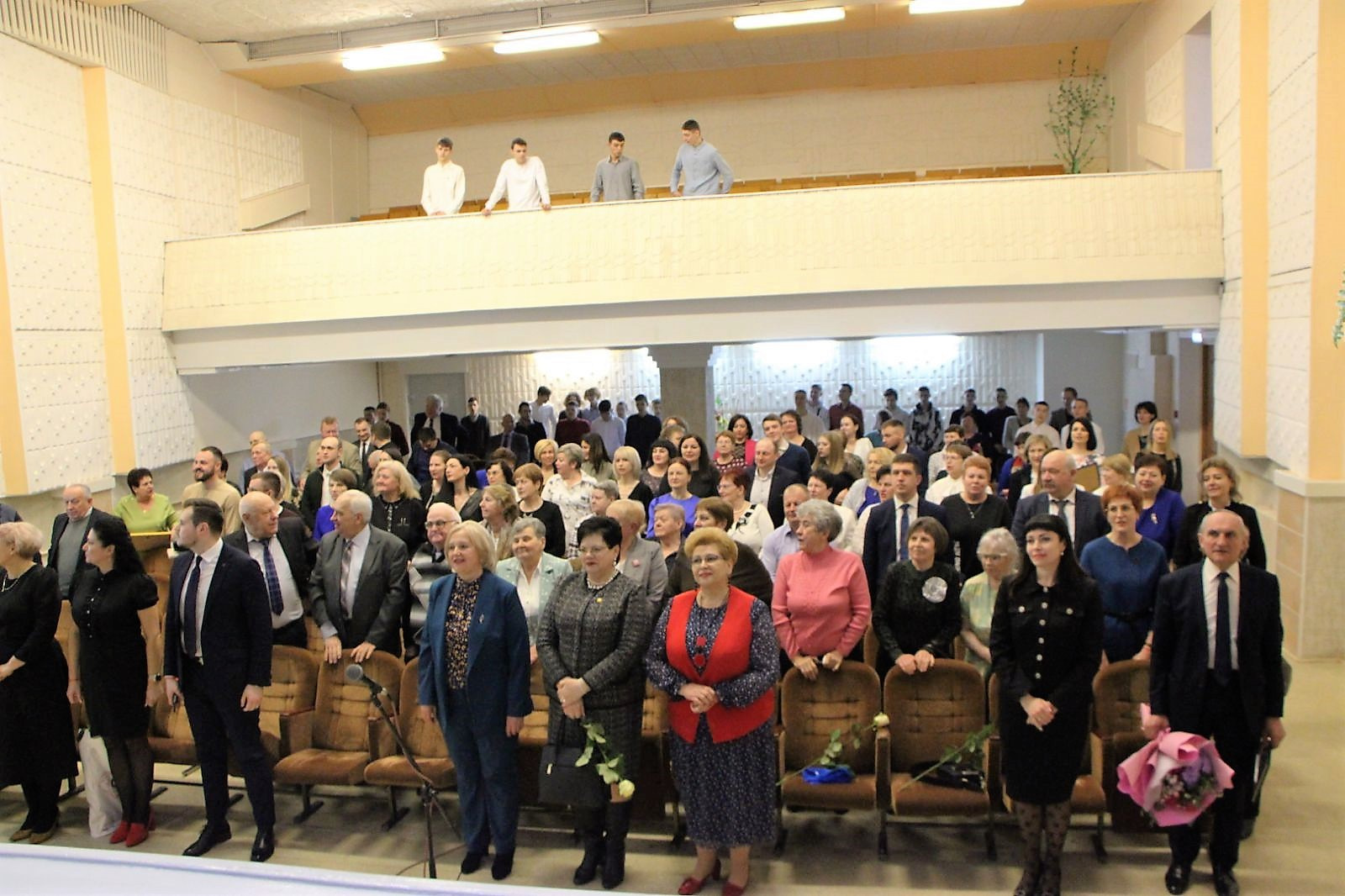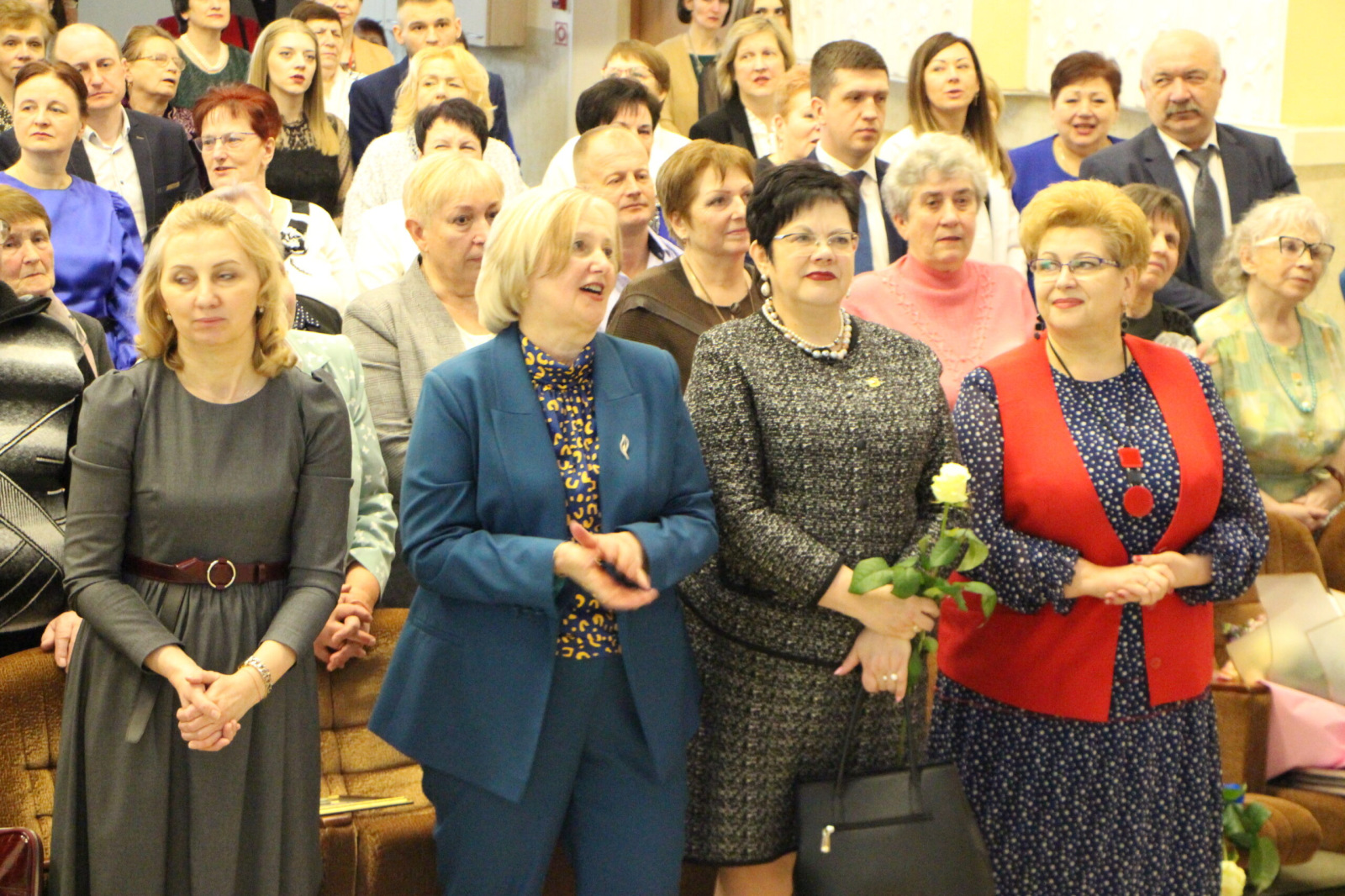 Поздравить виновников торжества собрался полный зал. Среди гостей первые лица главного управления образования, представители по международному сотрудничеству из Технологического колледжа г.Советск Российской федерации, ветераны профессионального образования и руководители организаций заказчиков-кадров.