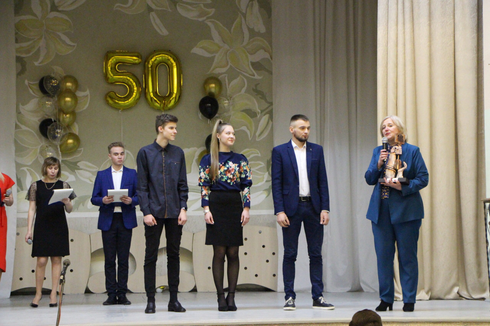 Полноправной хозяйкой праздника и юбилейного вечера была директор колледжа Елена Железнякович, которая отметила, что полувековой юбилей для колледжа – это не просто событие, а еще один повод плодотворно развиваться и продвигаться вперед к намеченным целям. К слову, Елена Ивановна прошла в этом учебном заведении путь от мастера производственного обучения, преподавателя черчения, заместителя директора по УВР до директора лицея — таков ее послужной список.