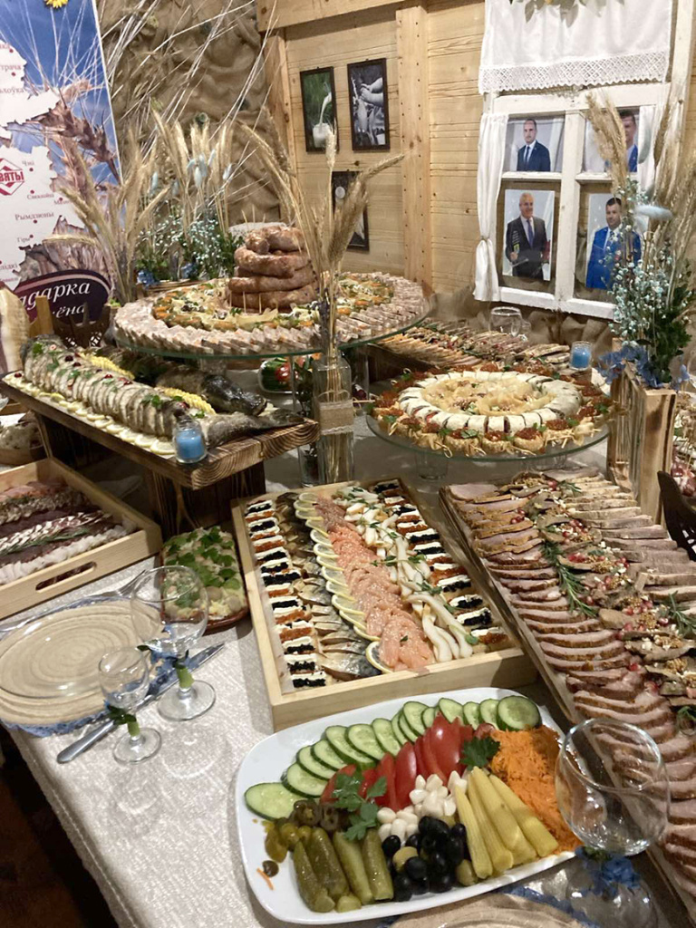 Да мяне ў кафэ перайшлі дзяўчаты з калгаснай кухні са Страчанкі. Мы не толькі кармілі сваіх работнікаў, але і прымалі заказы на правядзенне ўрачыстасцей: вяселляў, юбілеяў, хрэсьбін. Першы год для прыгатавання фуршэтнага стала запрашалі гаспадынь: нашы прадукты – іх работа. Праз год сталі самі спраўляцца.