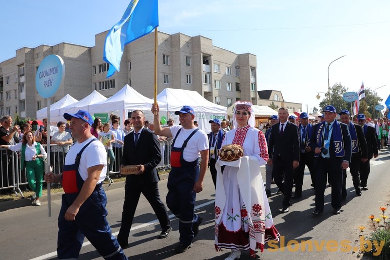 В 13.00 наступил кульминационный момент фестиваля, когда на главную площадь Зельвы торжественным шествием вышли герои жатвы-2023, замечательные труженики, которые напряженно трудились в течение всей уборочной кампании, собирая урожай с полей Гродненщины, и наш регион может гордится результатами. Земледельцев тепло встречали многочисленные участники и гости фестиваля.
