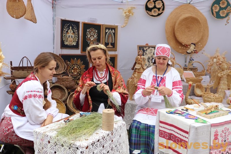 «Город мастеров» на «Дожинках» в Зельве имел внушительные масштабы. Наши мастерицы из Слонимского районного центра культуры, народного творчества и ремесел также представили свои работы для выставки, а еще щедро делились творческими секретами с участниками фестиваля-ярмарки. Анастасия Зеленко проводила мастер-класс по соломоплетению, Елена Михед – по вышивке и ткачеству, Инесса Пацынко – по изготовлению кукол-оберегов.