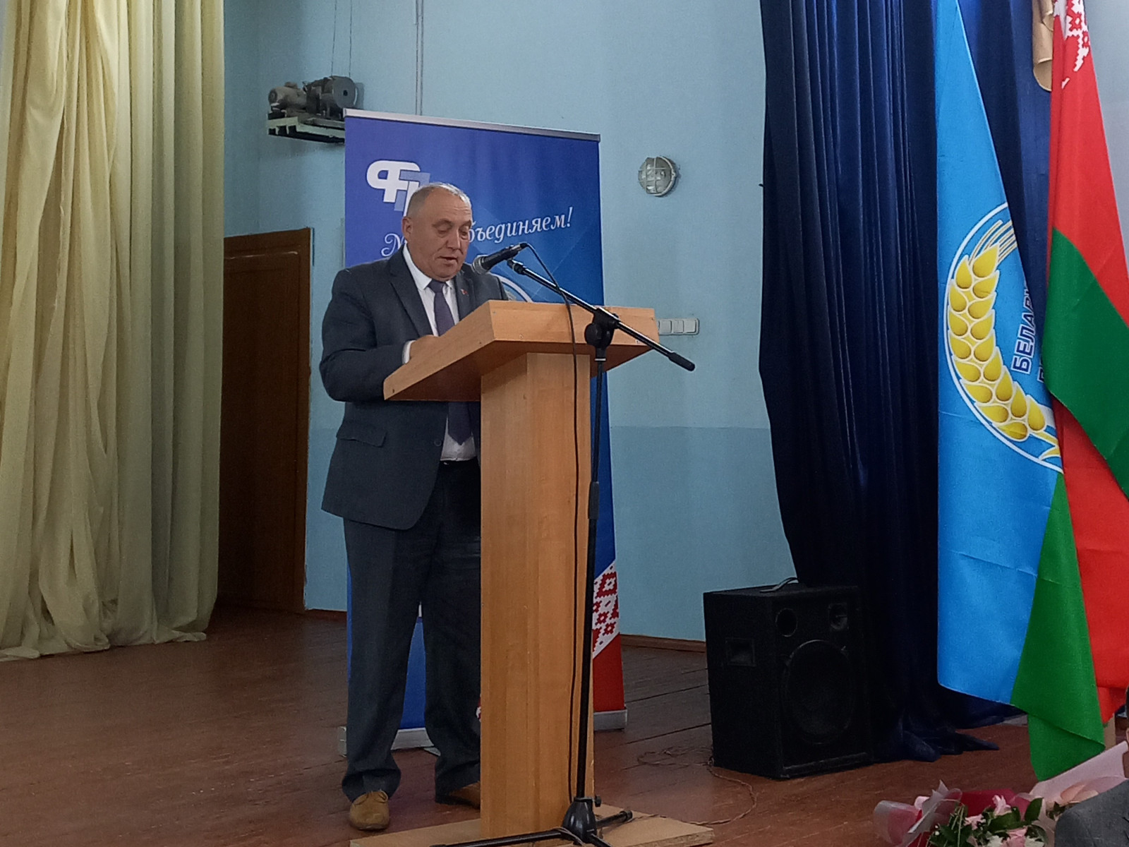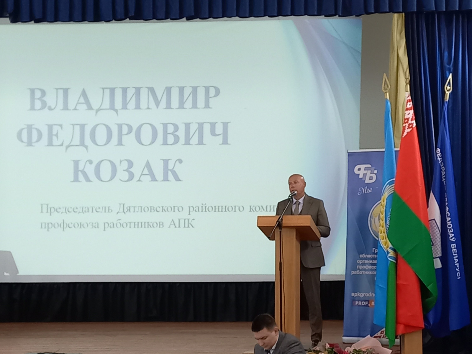 С основным докладом "О ходе выполнения Программы деятельности Федерации профсоюзов Беларуси на 2020-2025 годы, Белорусского профсоюза работников АПК в свете решений в свете решений IV Пленума Республиканского комитета профсоюза работников АПК" выступил председатель Гродненской областной профсоюзной организации отраслеслевого профсоюза Ромуальд Юровский.