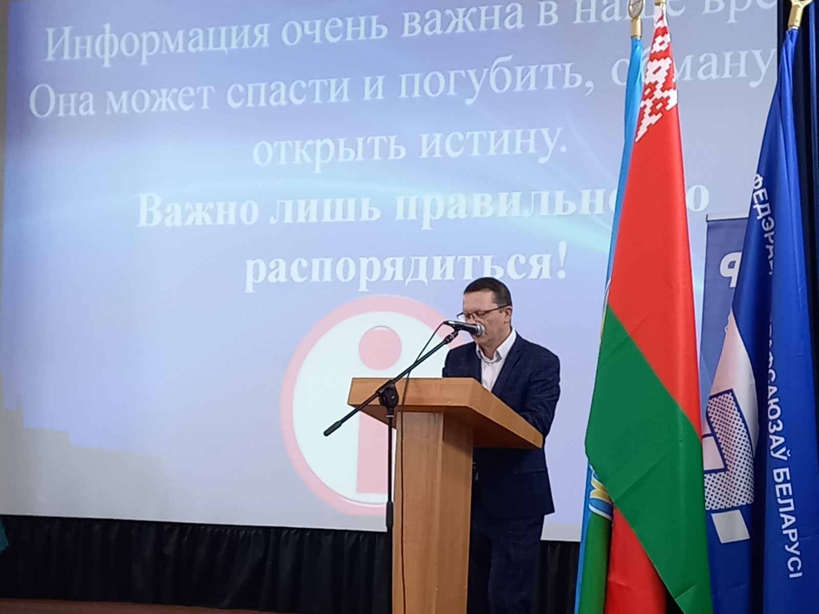 Не менее важный и актуальный вопрос информационной работы осветил в своем докладе председатель Островецкого райкома отраслевого профсоюза Юрий Адуло, который выступил с очень интересной и емкой презентацией. К слову, Островецкая районная организация по итогам минувшего года занимает лидирующую позицию в этом направлении профсоюзной деятельности.