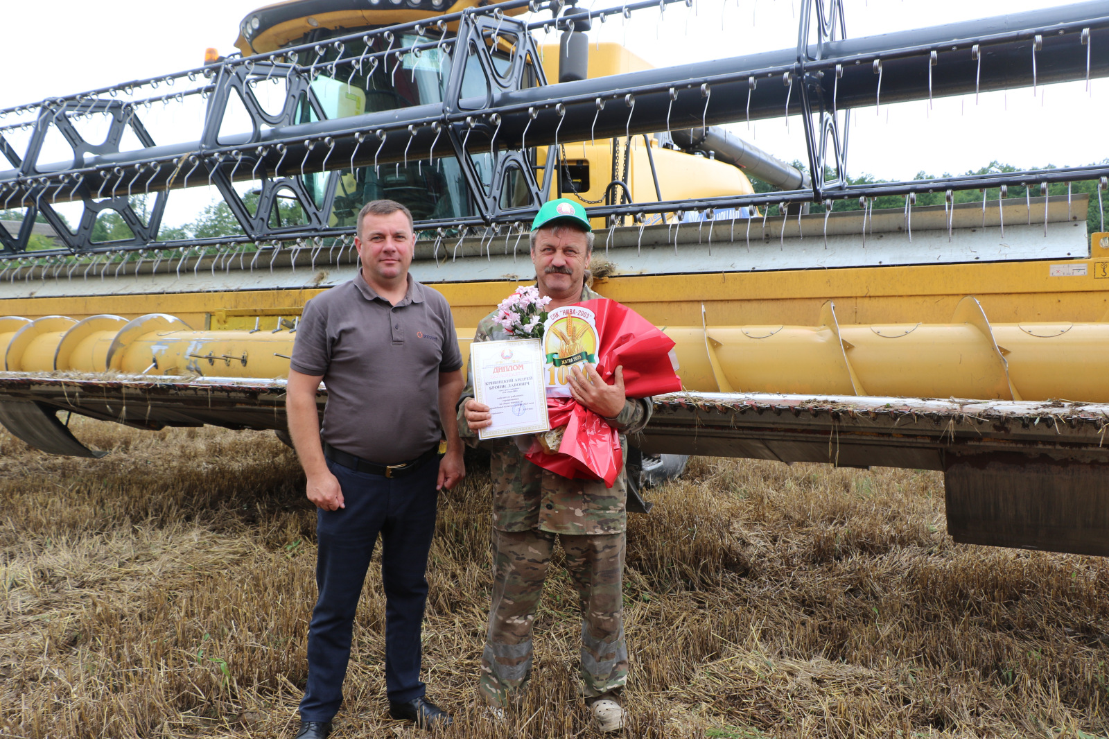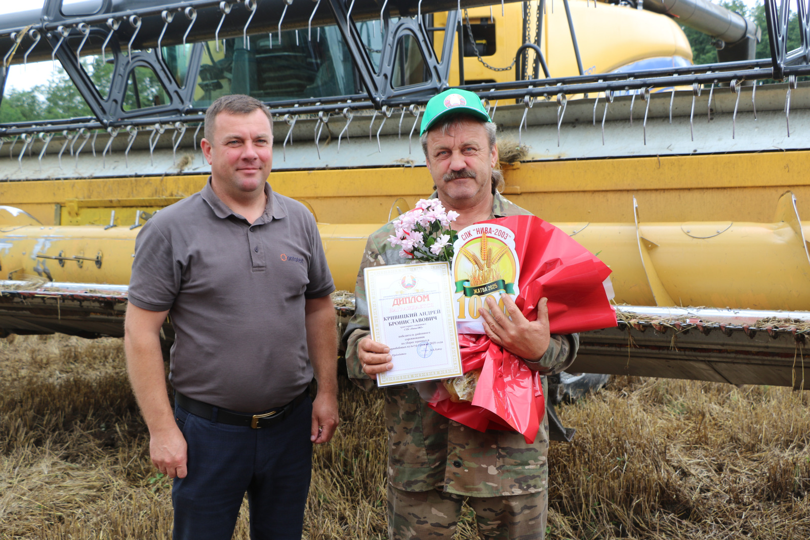 Поздравил Андрея Кривицкого с тем, что он стал победителем районного соревнования по уборке зерновых и зернобобовых культур урожая 2025 года председатель Гродненской районной организации Белорусского профсоюза работников АПК Александр Аутко. Вручил ему кепку, диплом и денежную премию.