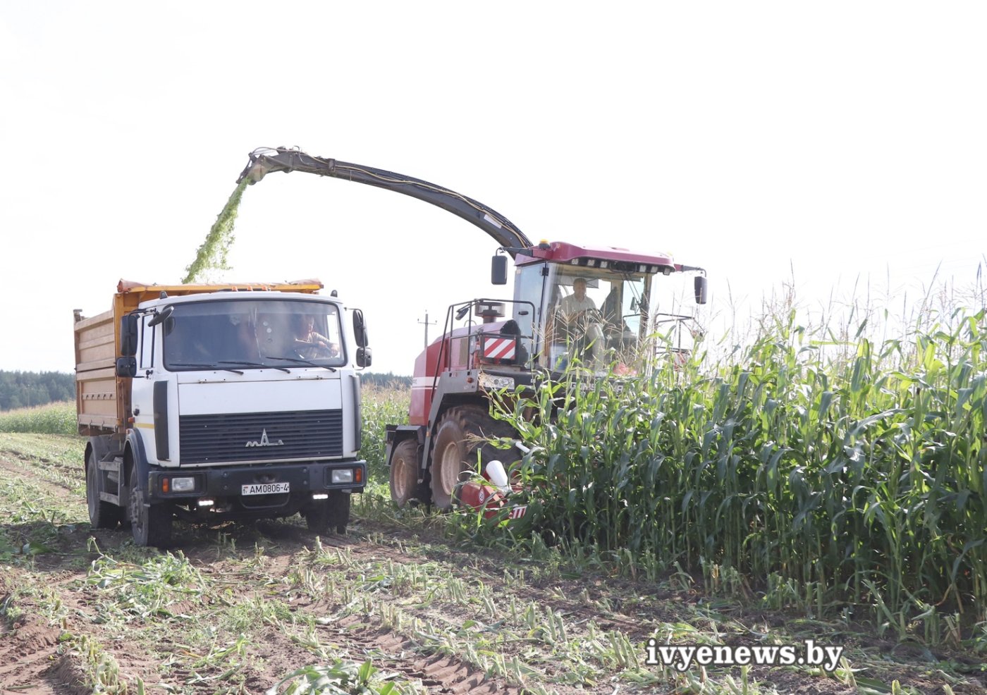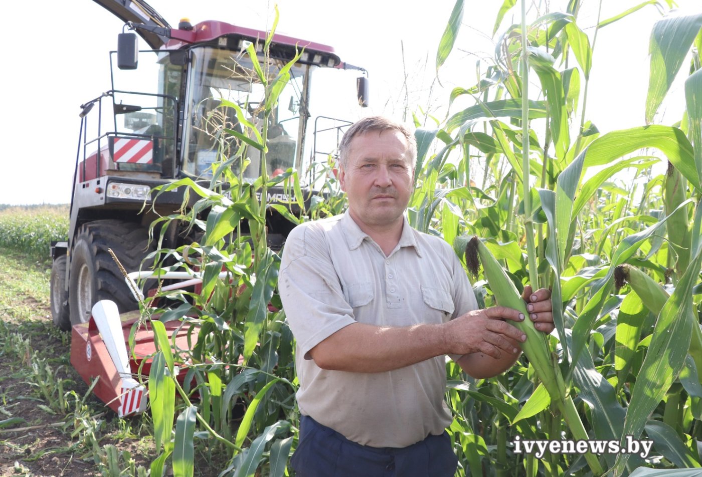 Первая тысяча тонн уже убрана. На уборке задействованы на посещенном корреспондентами участке, комбайнер Андрей Голомбовский, водители на отвозке силосной массы: Иосиф Сурудо, Сергей Богушевич, Юрий Бычко.