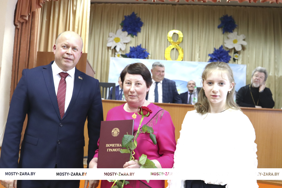 Андрей Санько вручил Почетные грамоты Игорю Эйсмонту, Геннадию Прокоповичу, Ирине Можейко и Благодарность председателя райисполкома Валентине Костюк.