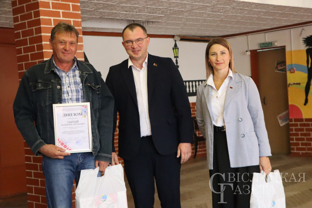 Поздравить тружеников села приехали председатель райисполкома Андрей Грицкевич и лидер отраслевого профсоюза района Татьяна Борель.