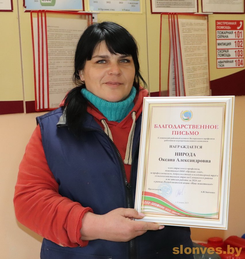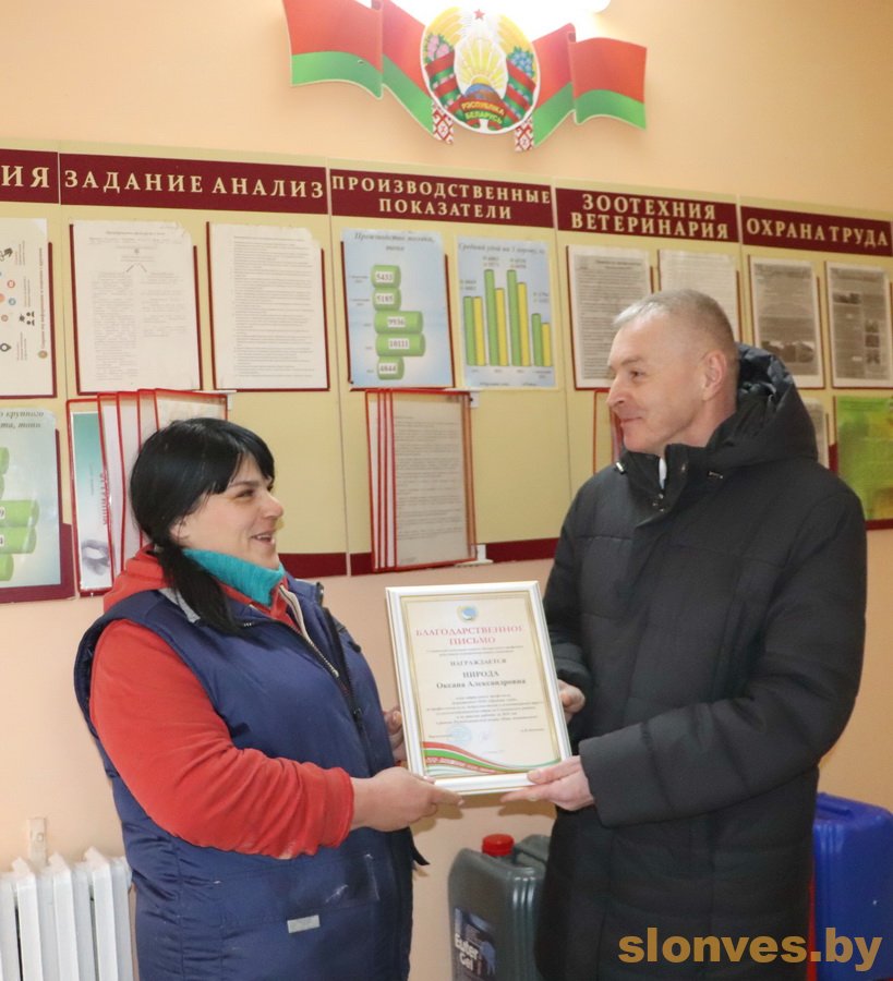 Слонимский районный комитет профсоюза работников агропромышленного комплекса в рамках республиканской акции «Наш животновод» продолжает чествовать лучших работников животноводческой отрасли района. Заслуженных наград за профессионализм, добросовестный и плодотворный труд в сельскохозяйственной отрасли района и по итогам работы за 2024 год, были удостоены работники сельскохозяйственного предприятия ООО «Органик лэнд»: животноводы Людмила Николаевна Панфилович, Жанна Васильевна Шемейко, Оксана Александровна Нирода и оператор машинного доения Зарина Николаевна Климутко. С глубоким уважением и признательностью дипломы и ценные подарки труженикам сельхозпредприятия вручил председатель Слонимского районного комитета профсоюза работников АПК Александр Николаевич Зинченко. Он поблагодарил уважаемых женщин за нелегкий, но столь значимый труд, за профессионализм и ответственность. Также в ходе встреч, которые инициирует профсоюз, в сельскохозяйственных коллективах решаются вопросы улучшения санитарно-бытовых условий, проходит мониторинг соблюдения трудового законодательства, охраны труда, уделяется внимание множеству других важных аспектов труда.