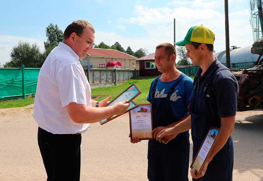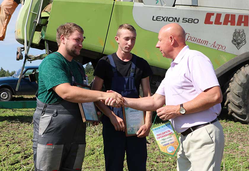 Кацярына Хілімончык узнагародзіла моладзевы экіпаж дыпломамі пераможцаў спаборніцтва і падарункамі з пажаданнямі стаць лідарамі на абласным узроўні. Да віншавання далучыўся кіраўнік гаспадаркі Станіслаў Мазур і прафсаюзны камітэт ААТ “Граніт-Агра”. Яны пажадалі маладым людзям дасягнуць мінулагодняга выніка і пераўзысці яго.