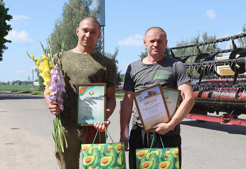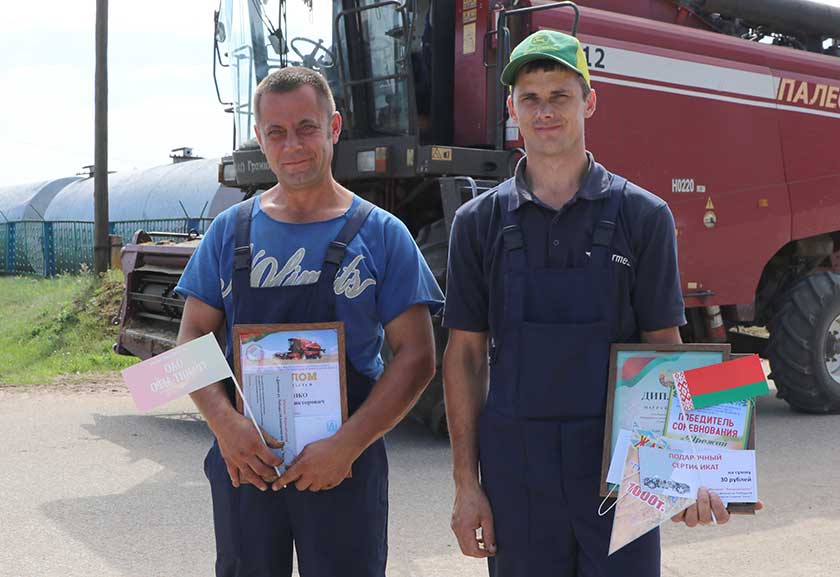 Аналагічнымі ўзнагародамі абласнога і раённага спаборніцтваў старшыня райвыканкама Андрэй Садоўскі адзначыў яшчэ адзін экіпаж-тысячнік гаспадаркі – Аляксея Лашкоўскага і Аляксандра Раманко.
