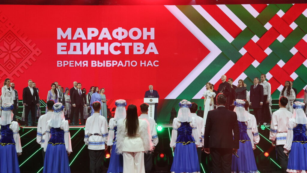 – «Марафон единства» стал настоящим гимном – гимном суверенной стране и ее истории. Гимном всем достижениям нашей независимости, – отметил Александр Лукашенко. – Вы, стоящие на этой сцене, и те, кого сегодня здесь нет, но мы их видели в городах нашей страны, просто молодцы. Огромное вам спасибо!