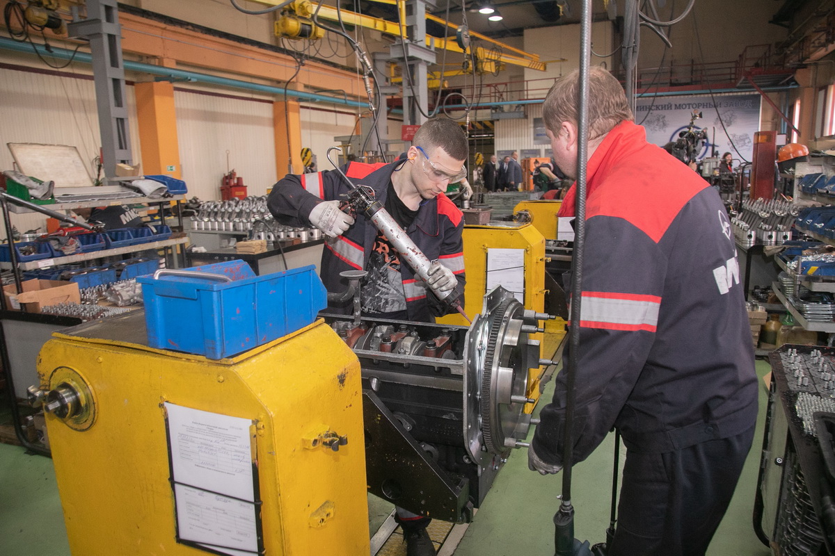 Глава национального профцентра в сопровождении генерального директора предприятия Александра Ботвинника, председателя профсоюза работников отраслей промышленности «БЕЛПРОФМАШ» Валерия Курсевича посетил производственные цеха Минского моторного завода (ММЗ), ознакомился с работой уникального высокотехнологичного оборудования, которое установлено в рамках модернизации предприятия, и новой лабораторией 3D-печати.