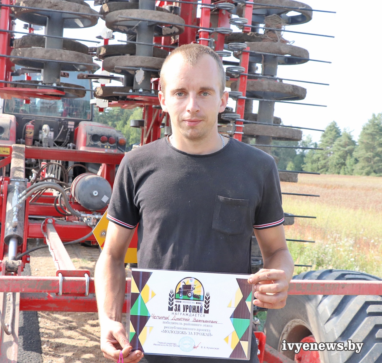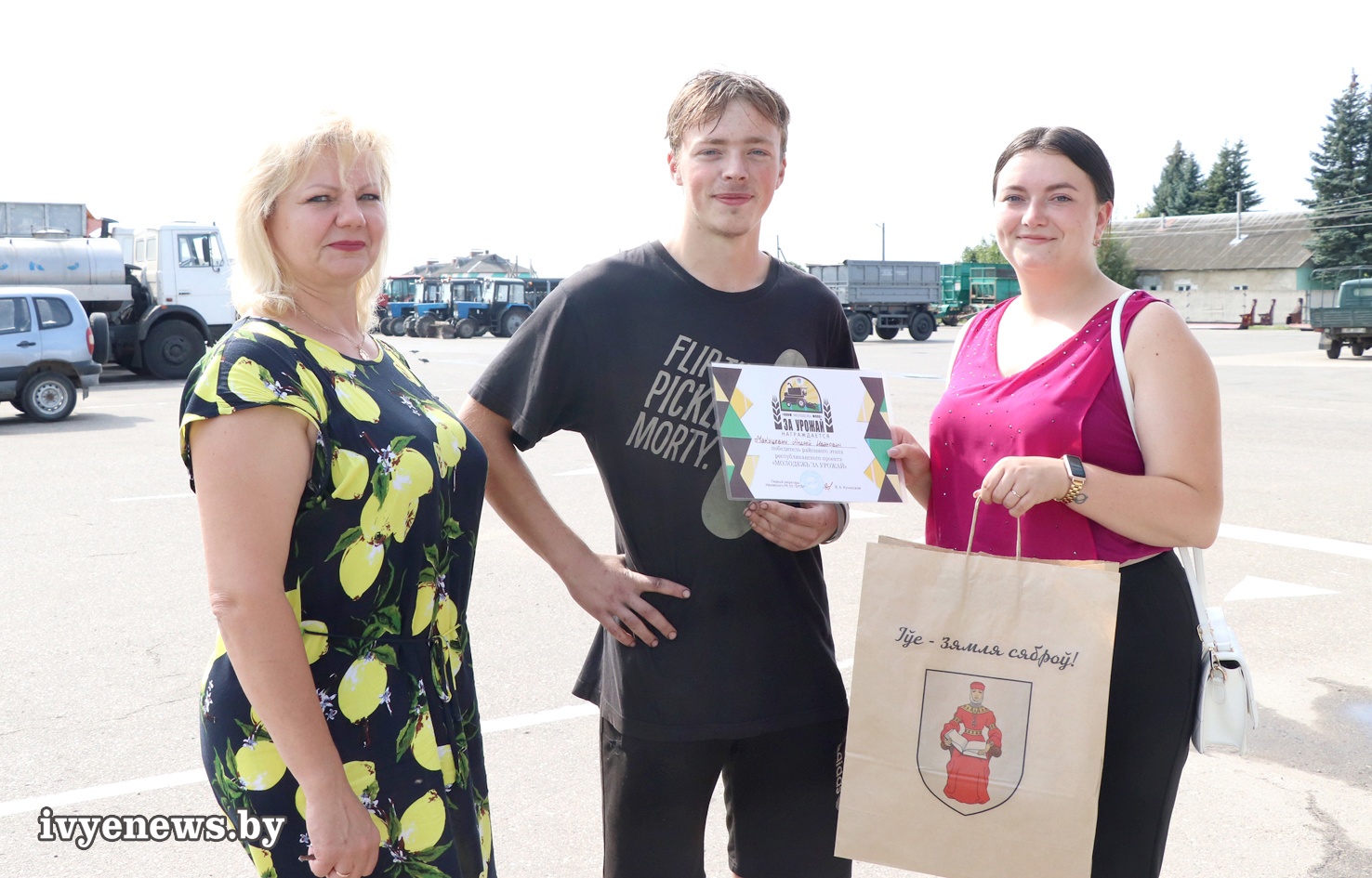Первый секретарь Ивьеской районной организации общественного объединения «БРСМ» Вероника Кучинская и председатель райкома профсоюза работников АПК Инесса Кулешо наградили дипломами и ценными подарками лучших представителей жатвы-2023. Дипломами и ценными подарками награждены лучший молодой водитель на перевозке зерна Андрей Ивановаич Макуцевич, лучший молодой комбайнер Дмитрий Валерьянович Чеперук.