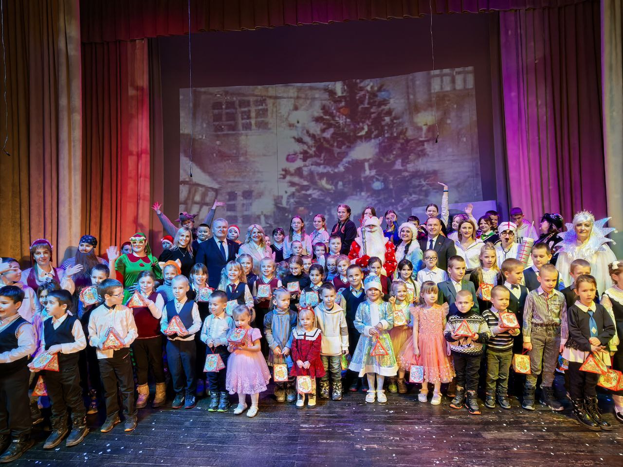 Яркое представление перенесли детей в настоящее волшебство, где каждый ребенок мог стать частью сказки. Важным моментом стало также вручение подарков, которые были подготовлены благодаря спонсорской поддержке Гродненской областной профсоюзной организации Белорусского профсоюза работников АПК, что позволило создать настоящее новогоднее настроение.