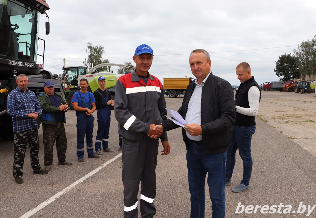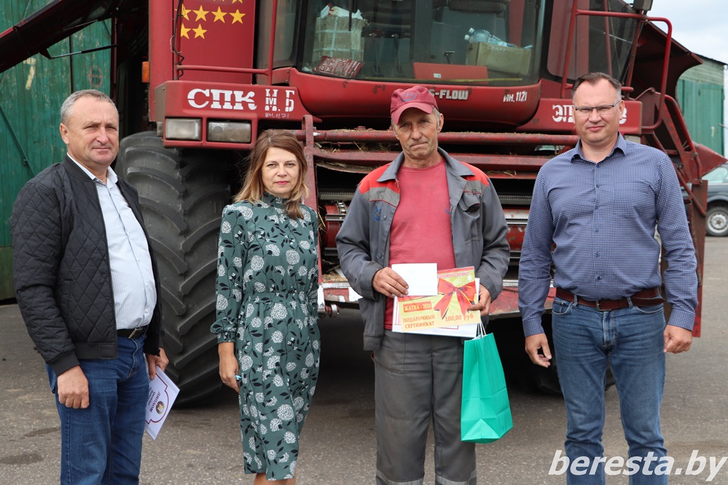 В Берестовицком районе прошло чествование победителей районного соревнования на уборке зерновых и зернобобовых культур по итогам минувшей недели, а также награждение очередных комбайнеров и водителей, преодолевших «тысячный» рубеж. Председатель Берестовицкого райкома профсоюза работников агропромышленного комплекса Владимир Онищик выехал в хозяйства, чтобы вручить передовикам жатвы заслуженные награды.