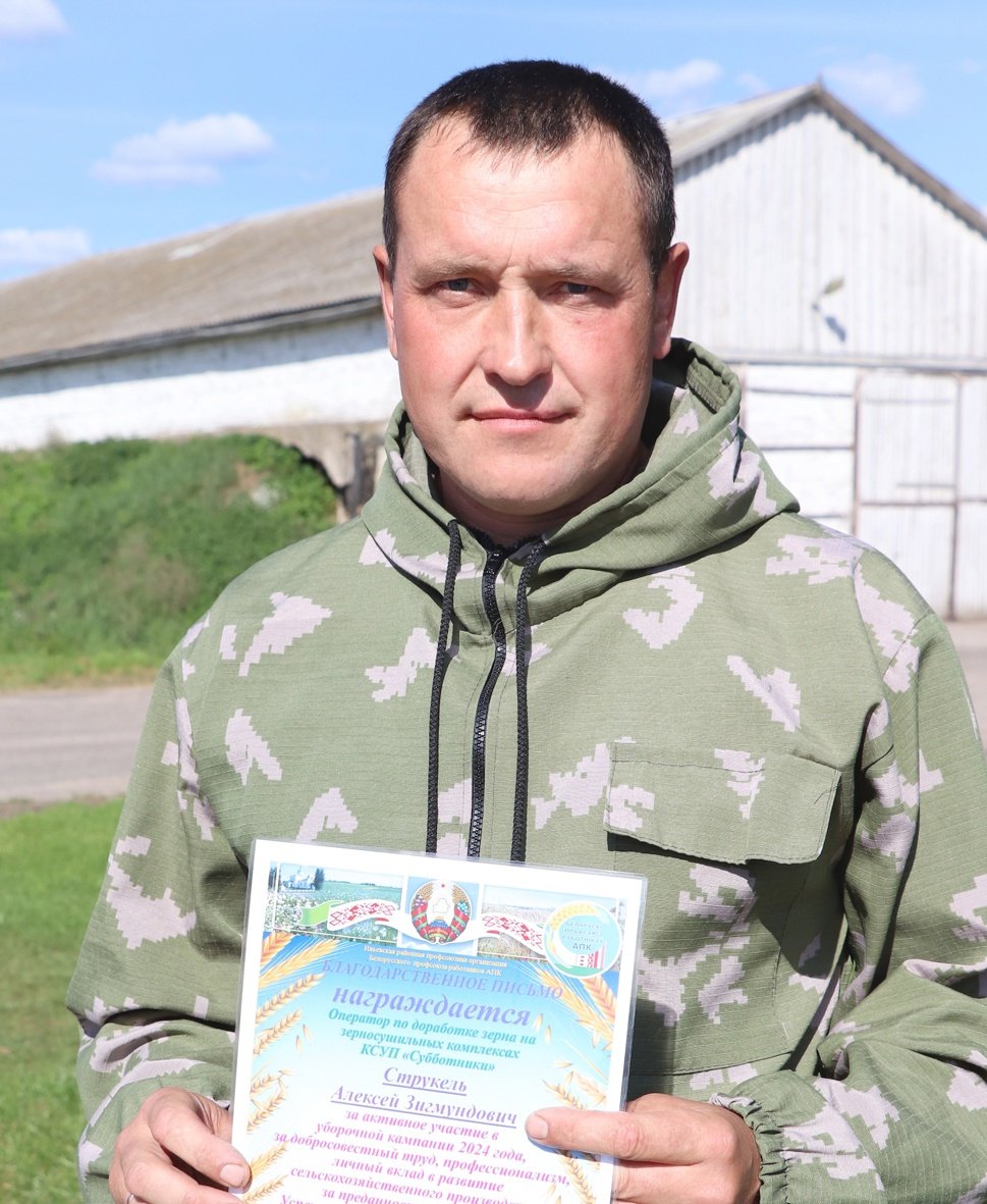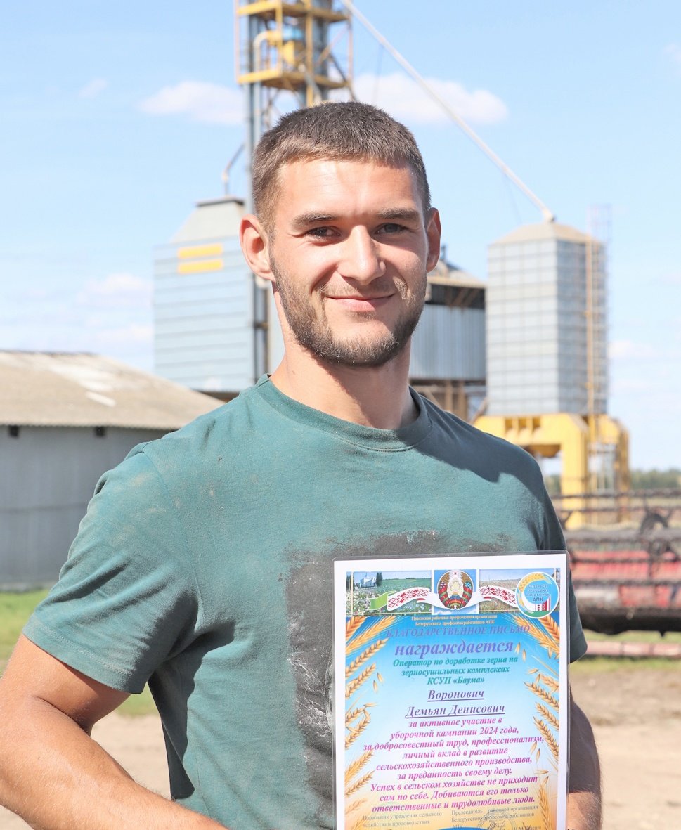 Дипломом Гродненского областного комитета Белорусского профессионального союза работников АПК награждены комбайнеры КСУП "Баума" Владислав Кульнис и Иван Дудойть, как одни из победителей областного соревнования на уборке зерновых и зернобобовых культур урожая 2024 года.