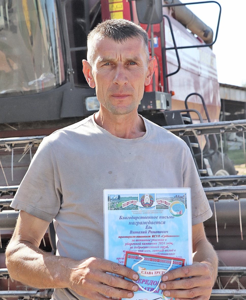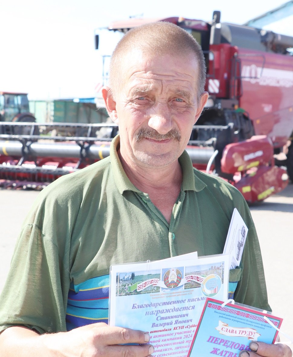 Дипломом от Ивьевского райкома Белорусского профсоюза работников АПК награжден семейный экипаж Войтеха и Дмитрия Рынкевичей из КСУП "Баума", а также молодежный экипаж Виктора Стефановича и Андрея Яковича из КСУП "Субботники", тракторист-машинист, из ОАО "Ивьевская сельхозтехника" Сергей Ивуть, принявший активное участие в уборке урожая.