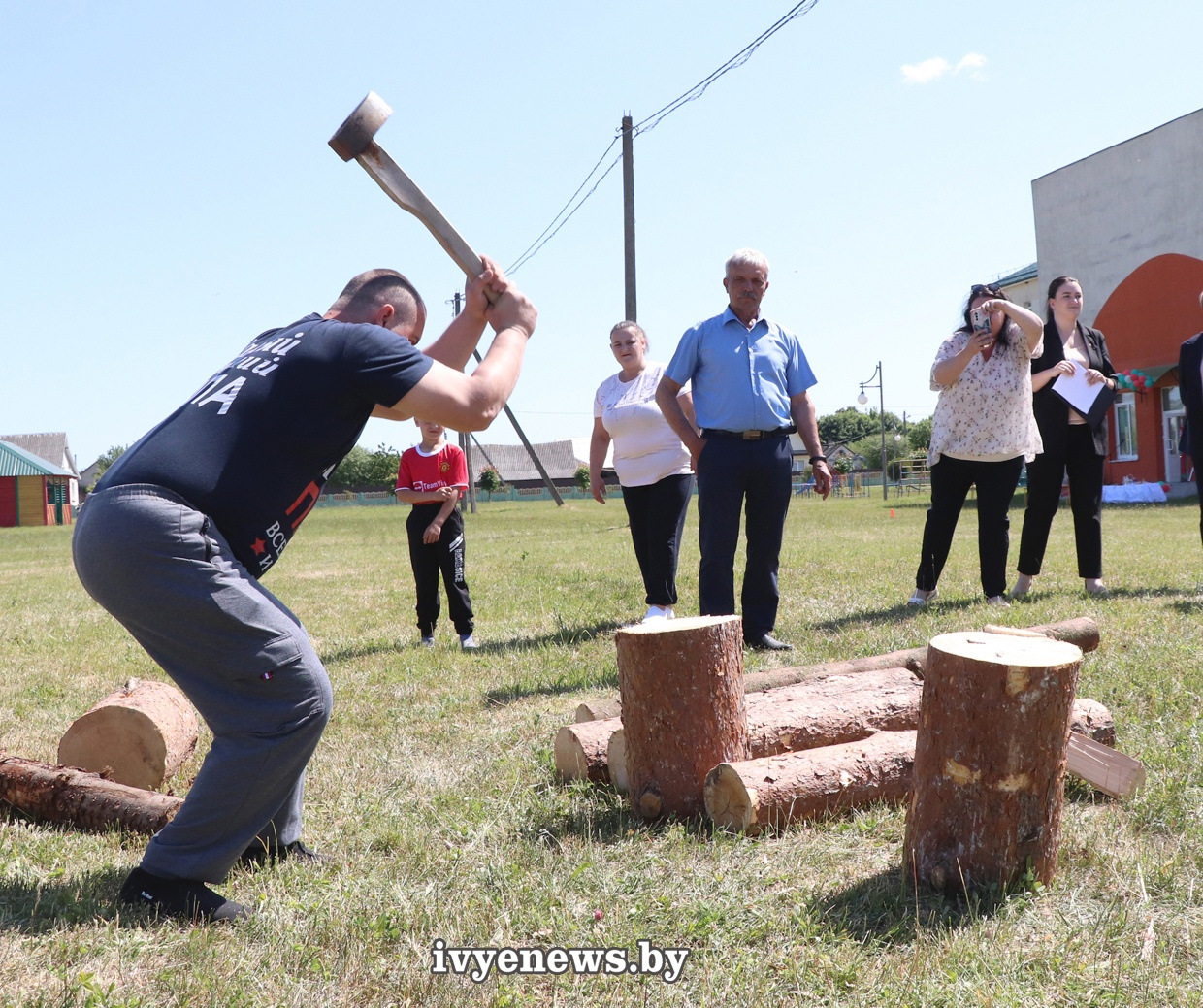Третий этап – «Дровосек». Во время задания распилить мужу и жене вместе бревно на помощь приходят председатели сельсоветов. Вот это реальная поддержка!