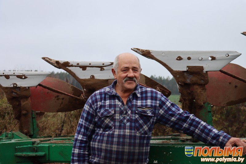 К новому железному коню (Игорь Владимирович меньше года ездит на тракторе «Беларус-1221.3») подцеплен четырехрядный плуг ПО-4-40. Механизатор говорит, что агрегат собирались списать, но он починил его и работой доволен.